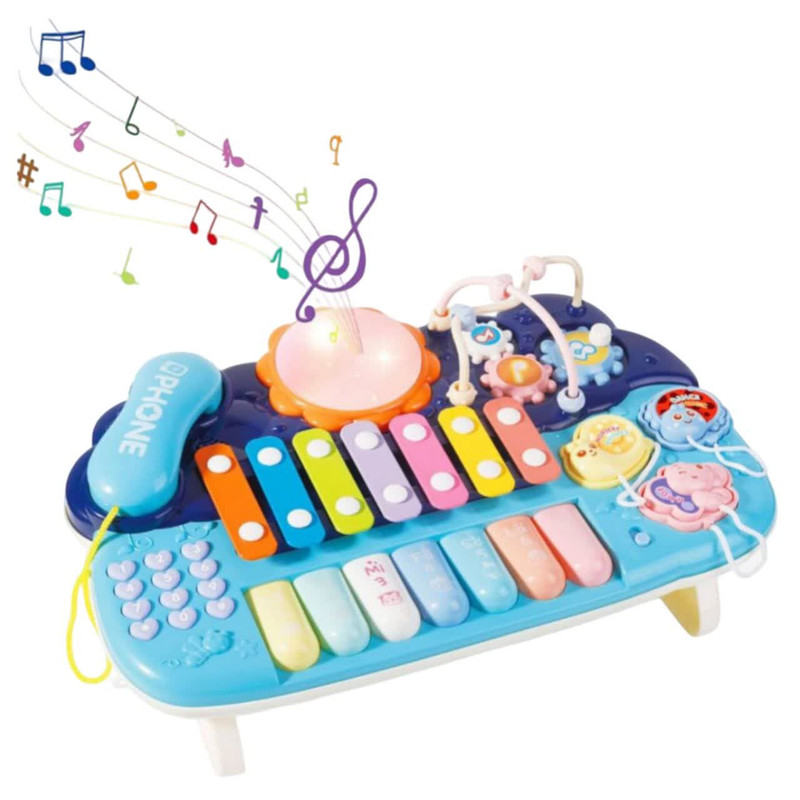 اسباب بازی ناب سل مدل پیانو، تلفن ، پازل ،درام ، بلز و بازی فکری چراغدار و موزیکال MULTIFUNCTION MUSICAL PIANO WITH LIGHT &MUSIC