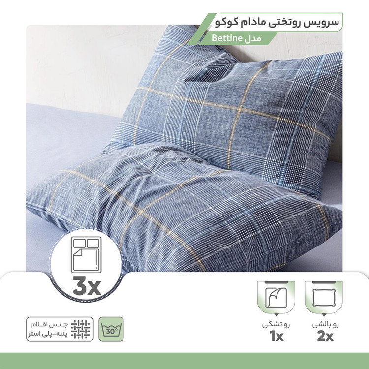 سرویس ملحفه مادام کوکو طرح Bettine دو نفره 3 تکه