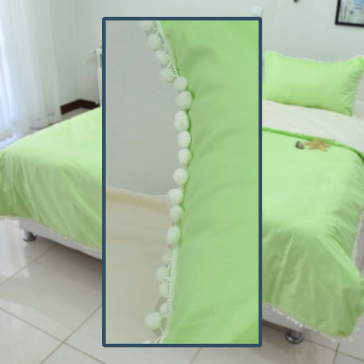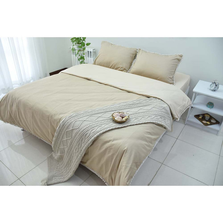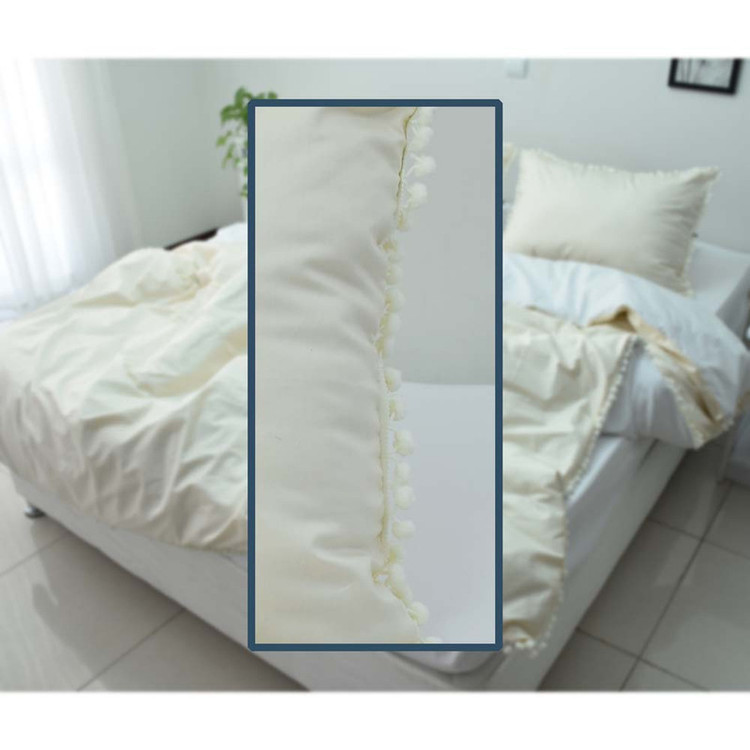 روبالشی ها به صورت پاکتی با تورفت 20 سانتیمتری دوخته شده است، و دور تا دور آن رشته های تزئینی وجود دارد.