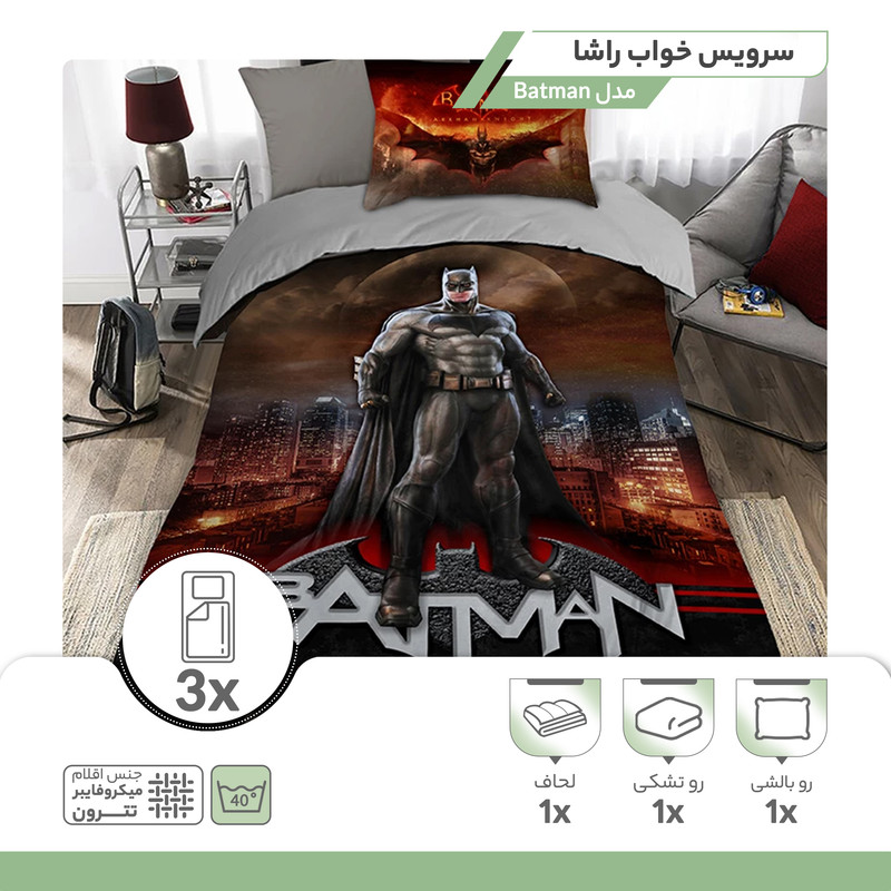 سرویس خواب راشا مدل Batman یک نفره 3 تکه