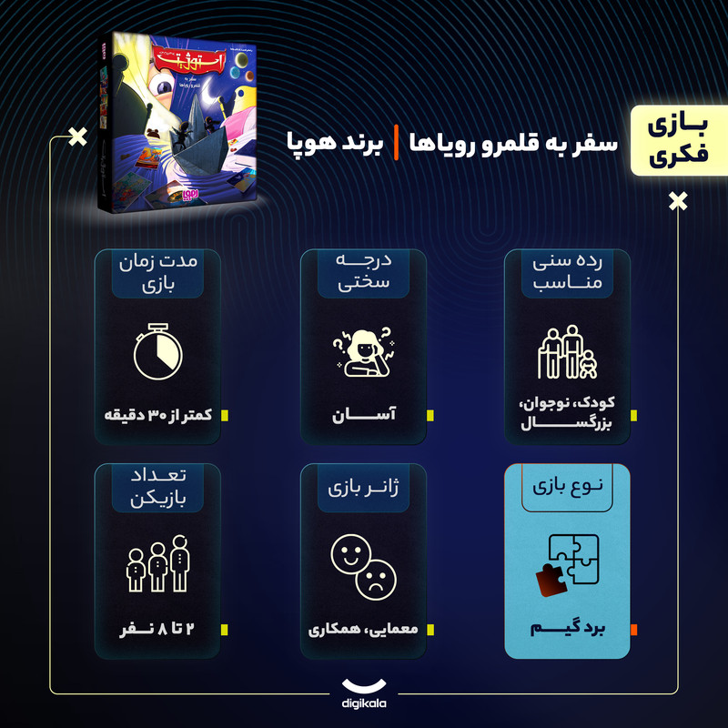 استوژیت، یک دورهمی جذاب و سرگرم کننده. ترکیبی از قدرت خلاقیت و ذهنخوانی است. استوژیت بر اساس بازی Dixit با طراحی خلاقانه Jean-Louis Roubira که در سال 2008 طراحی و در سال 1392 توسط هوپا تولید و روانه بازار شد. یک بازی جذاب و نوآورانه با موضوعی گیرا. 2 تا 8 نفره و مناسب برای 8 سال به بالا. یک گزینهی عالی برای بالا بردن خلاقیت و قدرت ذهنخوانی. این بازی را میتوان به عنوان یک بازی نه چندان پیچیده، به افرادی که با دنیای بازیهای رومیزی آشنایی ندارند توصیه کرد. در این بازی باید از استعداد و قدرت تخیل خود استفاده کنید تا هوشمندانهترین داستان را برای هر تصویر روایت کنید؛ قدرت ذهنخوانی و تجربیات خود را به کار ببندید تا داستان دیگران را به درستی کشف کنید؛ و در این راه از قصهها شعرها و مثلها کمک بگیرید. در پایان این رویاست که همچنان ادامه دارد...