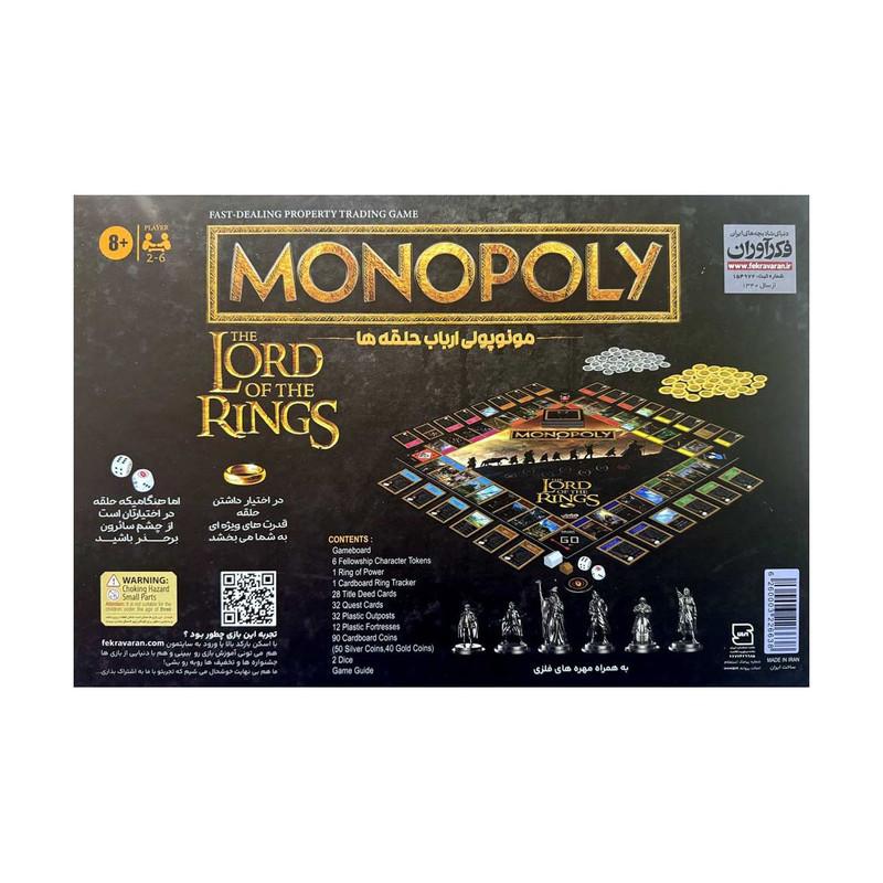 بازی مونوپولی نسخه ارباب حلقهها (Monopoly: The Lord of the Rings) ترکیبی جذاب از یکی از محبوبترین بازیهای فکری دنیا با داستان اسطورهای ارباب حلقههاست. این نسخه مخصوص علاقهمندان به بازیهای استراتژیک و طرفداران فیلم و کتاب «ارباب حلقهها» طراحی شده است.