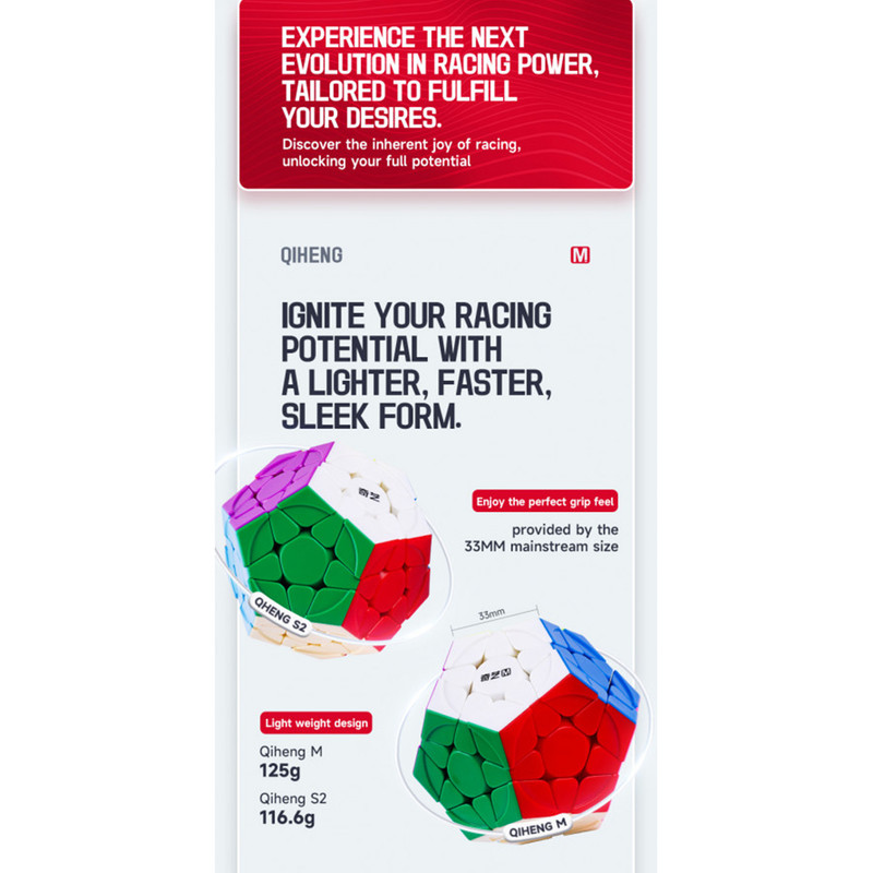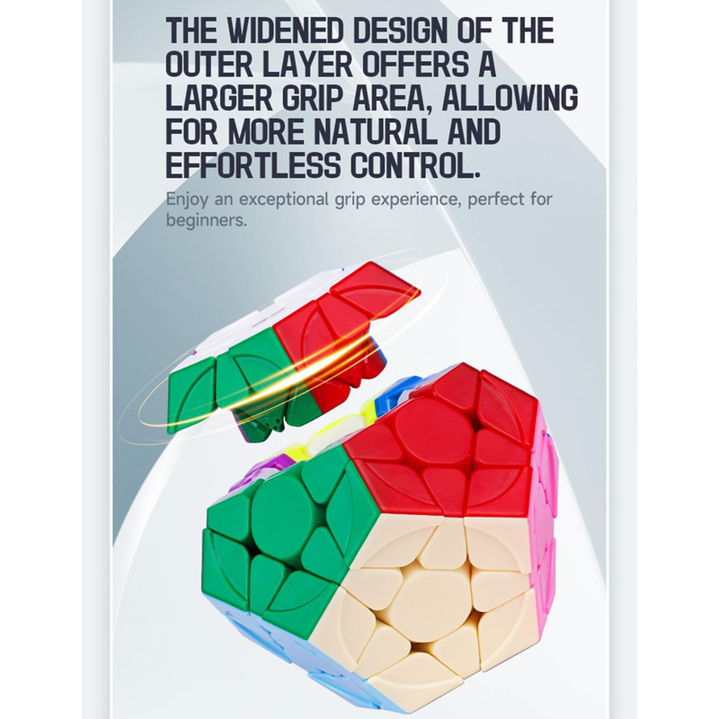 روبیک مگامینکس کای وای کایهنگ اس 2 با طراحی مدرن و جذاب طراحی شده است. در این روبیک فرورفتگی هایی وجود دارد که کمک می کند تا روبیک را بهتر در دست بگیرید. این ویژگی باعث می شود تا از قفل شدن یا از کنترل خارج شدن روبیک جلوگیری شود. همچنین مانع از اصطکاک سطوح روبیک می شود.