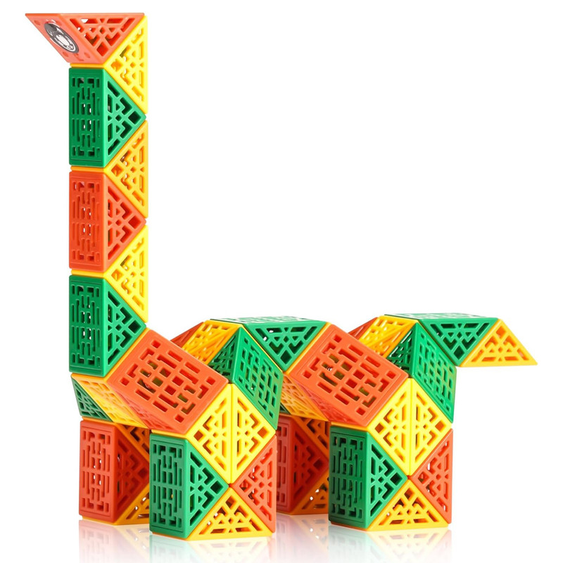 طراحی خاص DNA Pattern در این نسخه باعث شده ظاهر محصول جذابتر از روبیکهای ماری معمولی باشد؛ رنگبندی مدرن، خطوط شفاف و بدنه ساختهشده از پلاستیک ABS باکیفیت باعث دوام بالا و تحمل استفاده طولانیمدت میشود. نسخه ۴۸ قطعه به دلیل طول بیشتر و تعداد مفاصل بالاتر، آزادی خلاقیت را نسبت به نسخههای ۲۴ و ۳۶ قطعه چند برابر میکند. با این روبیک میتوان دهها مدل ساده تا فوقالعاده حرفهای ساخت؛ از شکلهای معمول مانند مار، سگ، توپ، ستاره، روبان، هرم، قلب، لوزی، قو و روبوت گرفته تا مدلهای دشوارتر مثل مارپیچهای چندلایه، اشکال هندسی حجیم، حیوانات سهبعدی، برجها، تونلها و ساختارهای ترکیبی بزرگ.