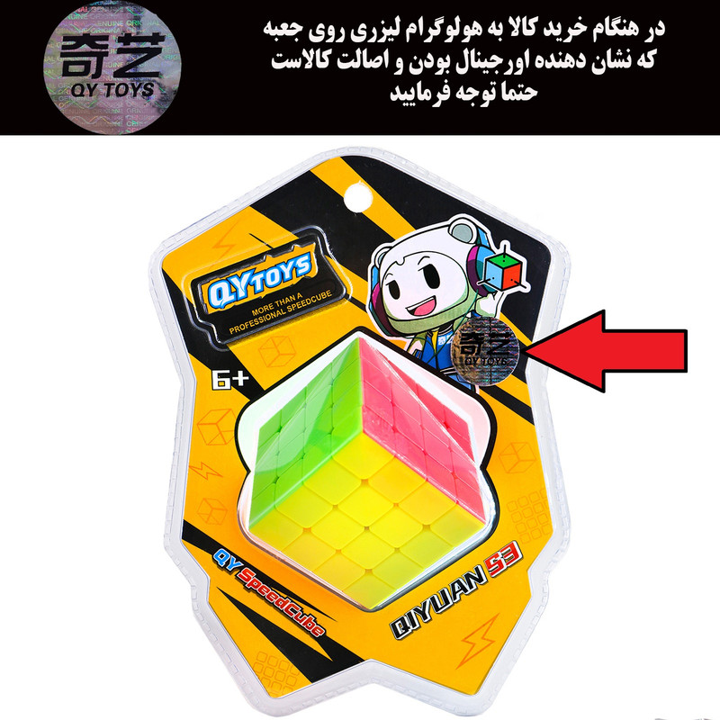 جنس بدنه از پلاستیک باکیفیت و مقاوم ساخته شده و رنگهای استیکرلس (بدون برچسب) آن شفاف و ماندگار هستند، به طوری که حتی بعد از ساعتها استفاده مداوم هم رنگها کدر یا محو نمیشوند. طراحی دقیق گوشهها و لبهها مانع قفل شدن ناگهانی روبیک شده و این یعنی سرعت و دقت بالاتر در هنگام بازی.