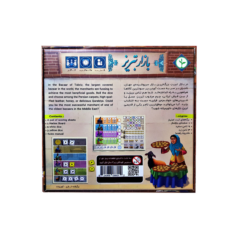 در بازی فکری بازار تبریز شما تاجری هستید که چند نوبت به بار انداز تبریز سر میزنید و هر بار با توجه به آنچه عرضه میشود تصمیم میگیرید کدام کالا را بردارید و در حجره های بازار به فروش بگذارید . هر کالایی امتیاز خاص خودش را دارد و در پایان بازی کسی که بیشترین امتیاز رو داشته باشه لقب تاجر بازار بزرگ تبریز را کسب می کند