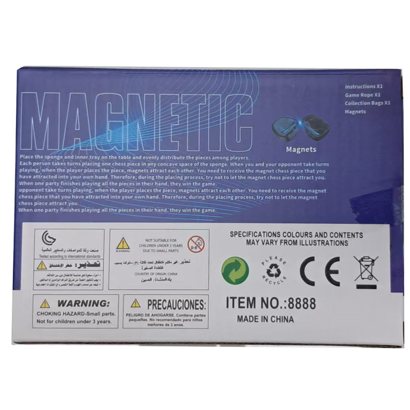این مدل از بازی شطرنج مغناطیسی بدون صفحه است و زمین بازی را با یک نخ که داخل بسته بندی هست میتوانید هر جایی که دوست داشتید مشخص کنید و از بازی لذت ببرید .