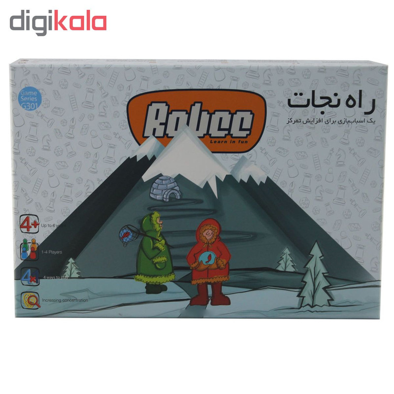 راه نجات یک بازی جذاب و مبتکرانه برای ۲ تا ۴ نفر است که میتوان آن را به چهار روش فردی یا تیمی انجام داد. این بازی شامل 4 تیله در دو اندازه و یک صفحهی بازی دو طرفه، دارای سوراخهای متعدد است. در هر طرف یک حلقه وجود دارد که با بندی به صفحه نصب شده است. بازیکنان با قرار دادن یکی از تیلهها درون حلقه، سعی میکنند با کشیدن بند متصل به حلقه از دو طرف تیله را بدون اینکه به داخل سوراخها بیفتد، به مقصد برسانند. انجام این بازی برای تقویت دقت و تمرکز بینهایت مؤثر است.