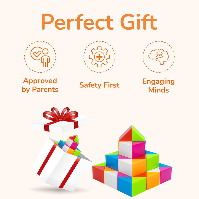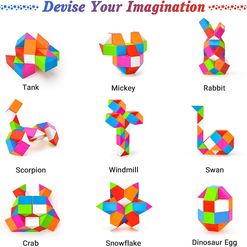 قطعات را به زوایای مختلف تغییر دهید.اشکالی مانند حیوانات، مار، ستاره و یا ساختارهای سهبعدی طراحی کنید.. مهارت خود را در سرعت و پیچیدگی ساخت افزایش دهید