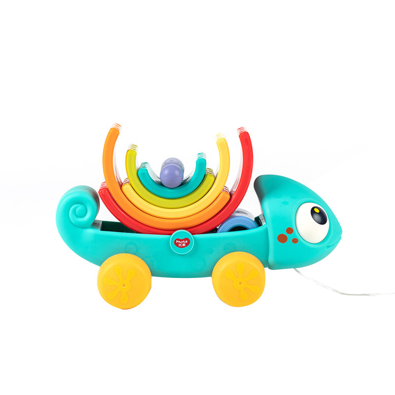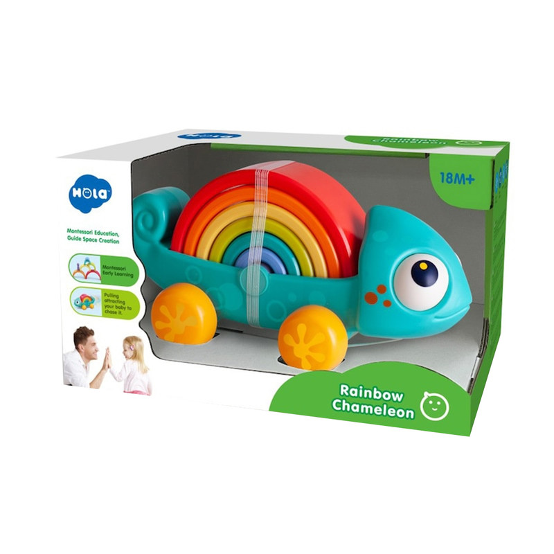 ساختار این اسباب بازی تصویری انتزاعی و با نمک از حیوان آفتاب پرست است.بازی با این آفتاب پرست به دو صورت انجام می شود.بندی به آن متصل است. کودک با کمک این بند، اسباب بازی را به دنبال خود می کشاند.در بدنه محصول چهار چرخ تعبیه شده است. حرکت آن حتی روی فرش های ضخیم هم به خوبی انجام می شود.روی بدن آفتاب پرست، 6 تکه نیم دایره رنگی در سایزهای مختلف به همراه یک عدد استوانه سوار شده اند.کودک می تواند این هفت تکه را به بیش از 35 حالت مختلف در کنار یکدیگر بچیند.این 35 حالت شامل تصاویر انتزاعی تا تصاویر حیوانات می شوند.این اسباب بازی مناسب برای 18 ماهگی به بعد است.ابعاد آفتاب پرست 28*13*14 سانتی متر است.محصول کشور چین است.بسته بندی شکیلی دارد و گزینه ای مناسب برای هدیه دادن است.