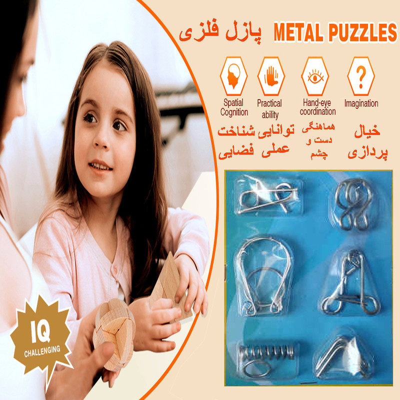 بازی فکری دنیای سرگرمی های کمیاب مدل میخ جادوئی فکری و فلزی مجموعه 6 عددی