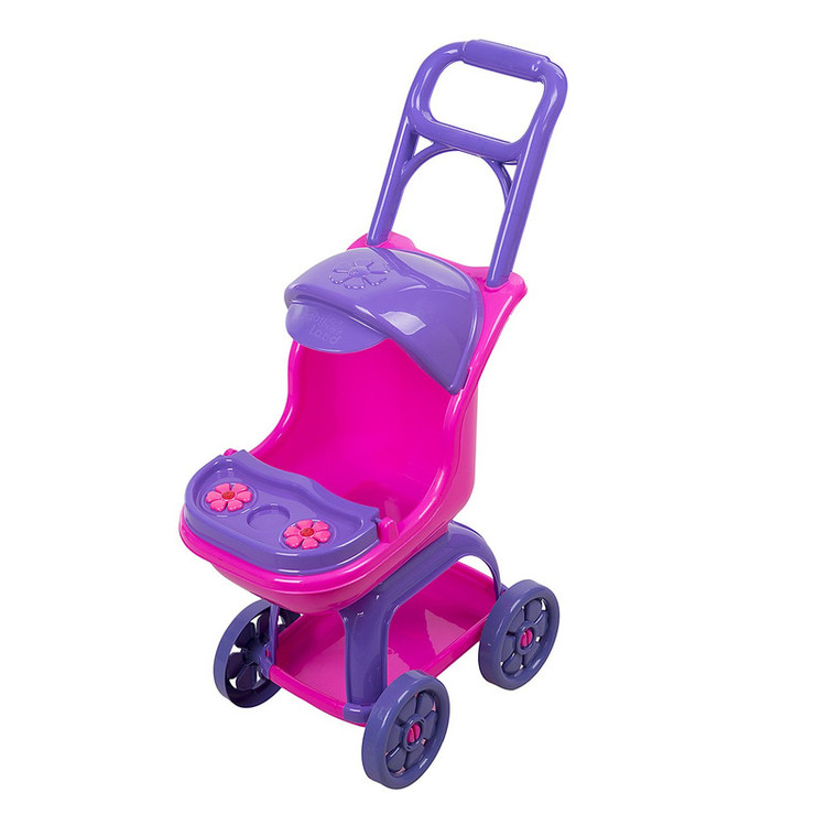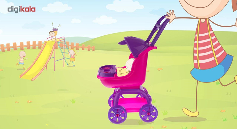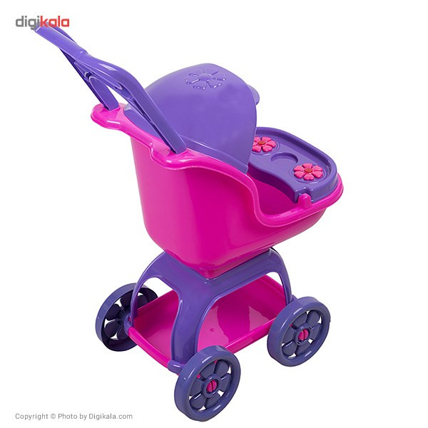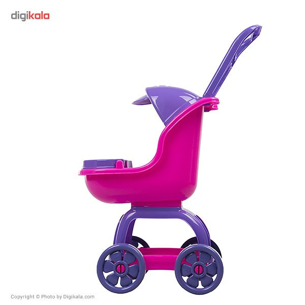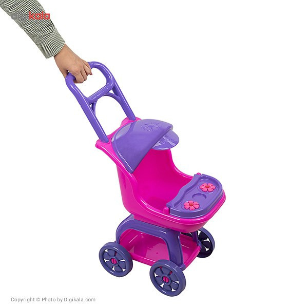 کالسکه اسباببازی در بازیهای کودکانه دختر بچهها، به خوبی حس مادرانه را برای آنها تداعی میکند. کودک با این کالسکه میتواند نقش مادری را ایفا کند که کودک خود را به گردش برده است. کالسکهی اسباببازی «بیبیلند» مدل «80218» از فریم پلاستیکی ساخته شده است. اگر از بالای کالسکه به آن نگاهی بیندازیم، دستههایی دارد که مادهی اولیهی تولید آن پلاستیک است. کمی پایینتر سایبان پلاستیکی بنفش رنگی وجود دارد. در قسمت جلوی نشمین محافظی قرار دارد که به کمک آن میتوان عروسک را نگه داشت. نقطهی تماس کالسکه با زمین چهارچرخ است که روی چهارپایهی کالسکه قرار گرفتهاند. چرخها از جنس پلاستیکاند که پایهها در بین دوچرخ به محورشان وصل میشوند. همچنین در قسمت پایینتر کالسکه سبد پلاستیکی قرار گرفته است که کودک میتواند وسایل خود را درون آن قرار دهد. میتوانید با خرید این کالسکه، کودک دلبندتان را حسابی خوشحال کنید.