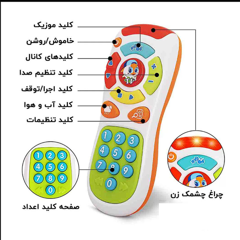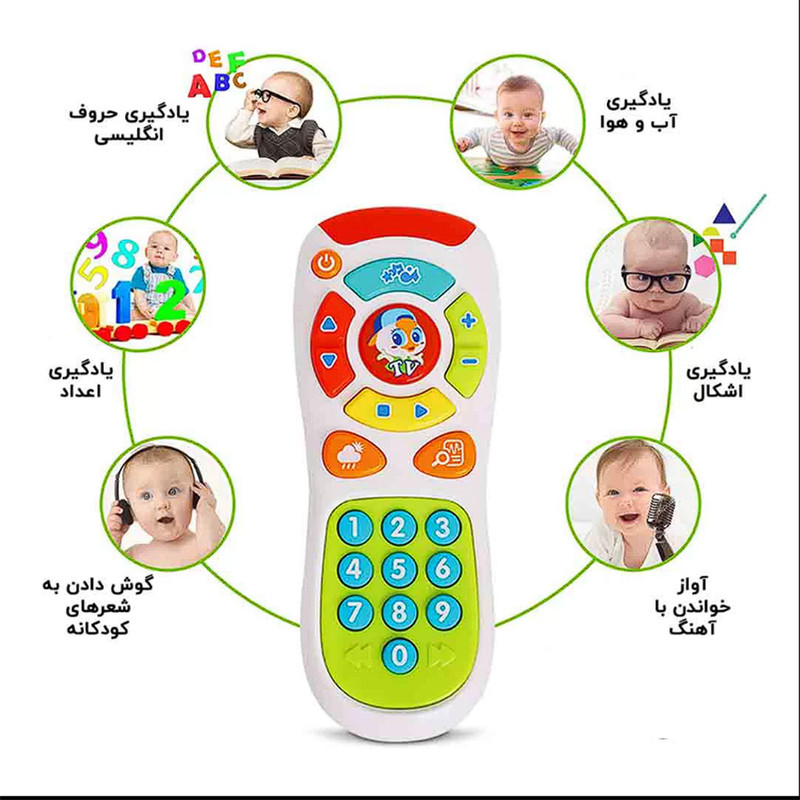 اسباب بازی ریموت کنترل موزیکال هولا یک اسباب بازی خوب و شاد برای کودکتان که هم از بازی لذت ببرد هم آموزش ببیند پیشنهاد ما به شما ست.این ریموت کنترل موزیکال حالت های مختلف برای سرگرمی و بازی کودک دارد.اسباب بازی ریموت کنترل موزیکال هولا مناسب برای آموزش رنگ ها , اعداد ، هماهنگی میان چشم و دست و شنوایی و افزایش مهارت دستان کودک دلبند شما است.اسباب بازی ریموت کنترل موزیکال هولا تویز وسیله ی ساده و مناسبی برای سرگرمی و آموزش زبان به نونهالان می باشد.بر روی این ریموت کنترل هولی دکمه ی روشن و خاموش، دکمه ی تعویض کانال، دکمه ی موسیقی، دکمه ی تنظیم حجم صدا، دکمه ی شروع و توقف ، دکمه ی اعلام وضع هوا ، دکمه ی تنظیم و دکمه ی عددها قرار دارد.با فشار دادن دکمه ی موسیقی چندین آهنگ و ملودی پخش می شود.با دکمه ی آب و هوا و اعداد کودک شما درمورد آب و هوا و اعداد آموزش می بیند