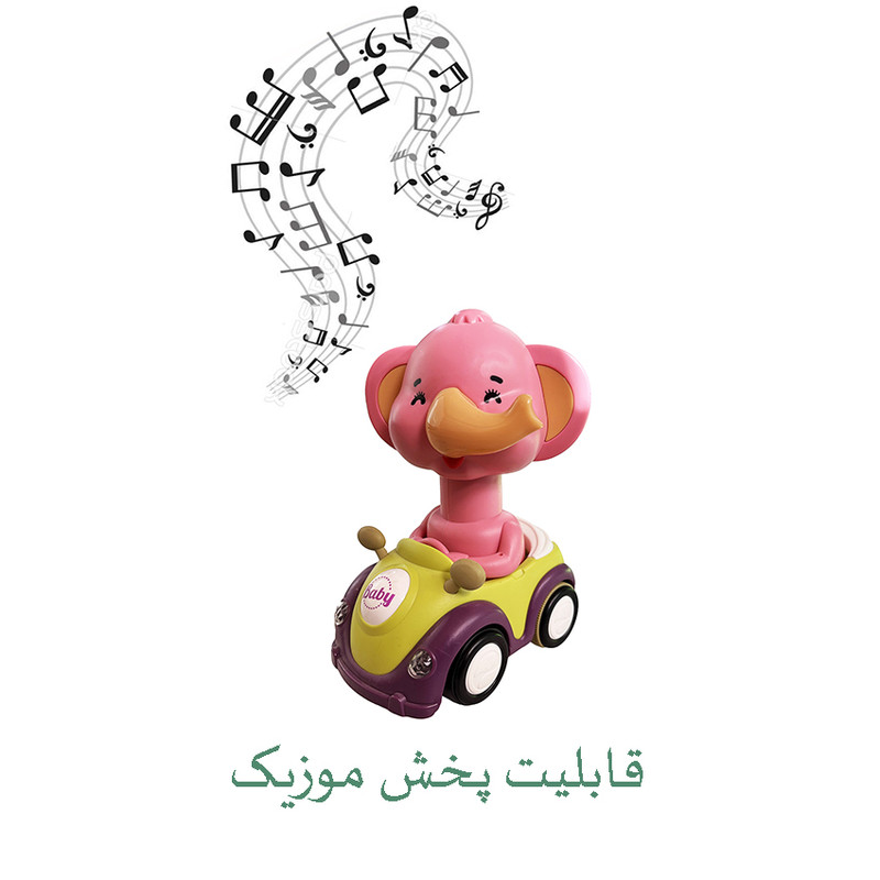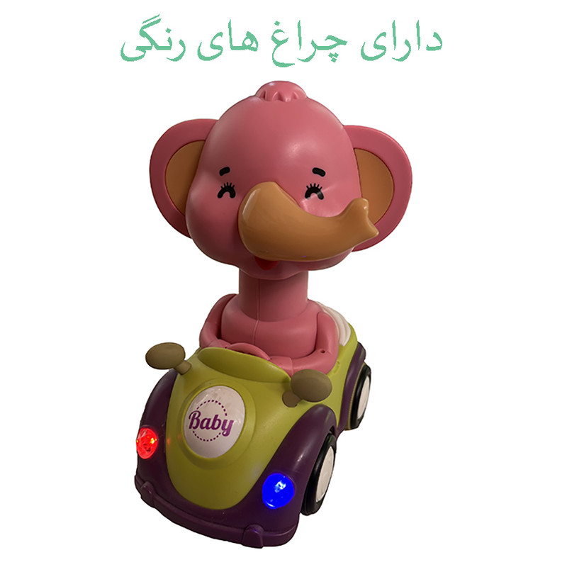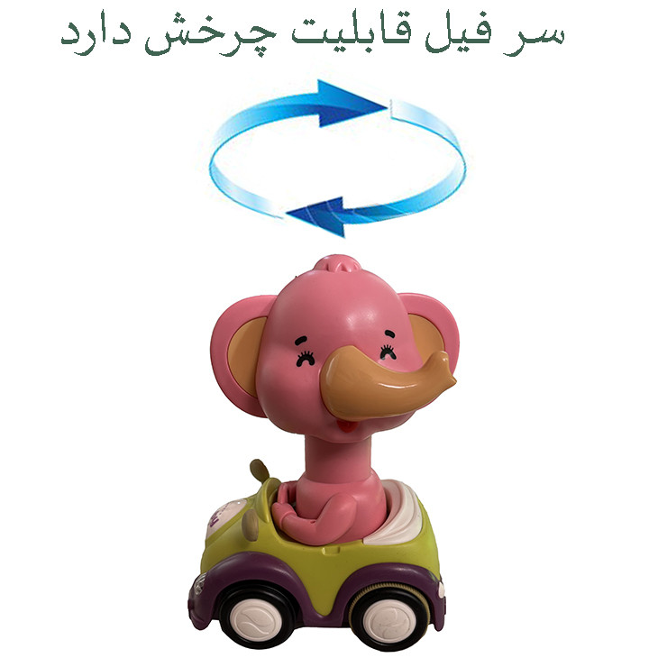 فیل ماشین سوار یک اسباب بازی کودکانه سرگرم کننده است که وقتی روشن میکنید موزیک زیبا پخش میکند و توجه کودک را جذب می کند. . این محصول دارای چراغ رنگی بوده که با روشن شدن موزیک پخش می شود و چراغ ها همزمان روشن می شوند.سر فیل قابلیت چرخش کامل دارد و در هر حالتی بخواهید می توانید آن را قرار دهید.همچنین این محصول به صورت عقب کش حرکت میکند.این اسباب بازی کودکانه از جنس پلاستیک بسیار مرغوب بوده و دارای کیفیت ساخت بسیار خوب می باشد و با سه عدد باتری کوچک روشن میشود.