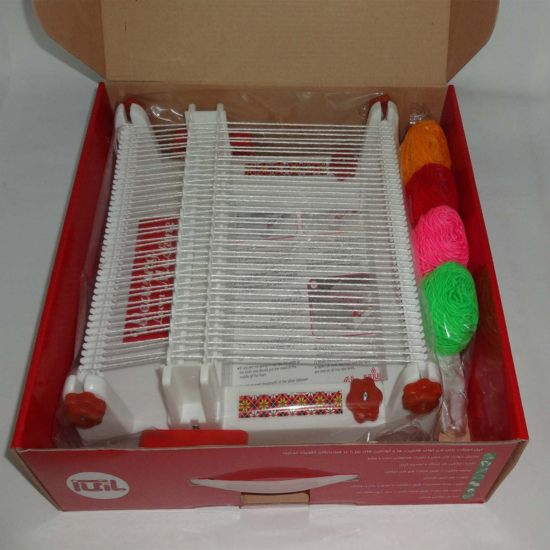اقلام همراه: 4 نخ رنگی-دستگاه بافندگی-شانه-5 عدد نخ کش