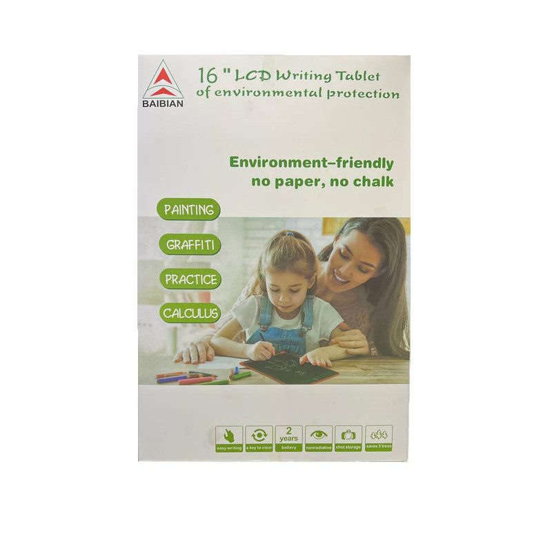 کاغذ دیجیتال نقاشی 16 اینچ AX6516 دارای قلم و پاک کن دیجیتال می باشد و همچنین با دست نیز قابلیت ترسیم روی آنها وجود دارد پاک کن این وسیله بصورت یک دکمه در قاب آن تعبیه شده است که بعد از فشار دادن آن هر آنچه روی تخته ترسیم شده پاک میشود.منبع تغذیه این کاغذ های دیجیتال آکسون یک باتری سکه ایی است که براحتی قابل تعویض است.این مدل در سایز 16 اینچ طراحی شده است و صفحه نمایشگر آن تمام رنگی می باشد که در سه رنگ آبی،مشکی، صورتی طراحی شده که متناسب با هر سلیقه و هر سنی می باشد .