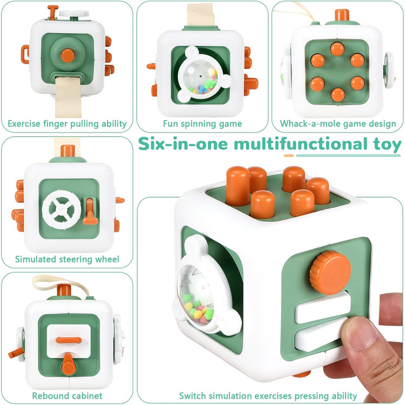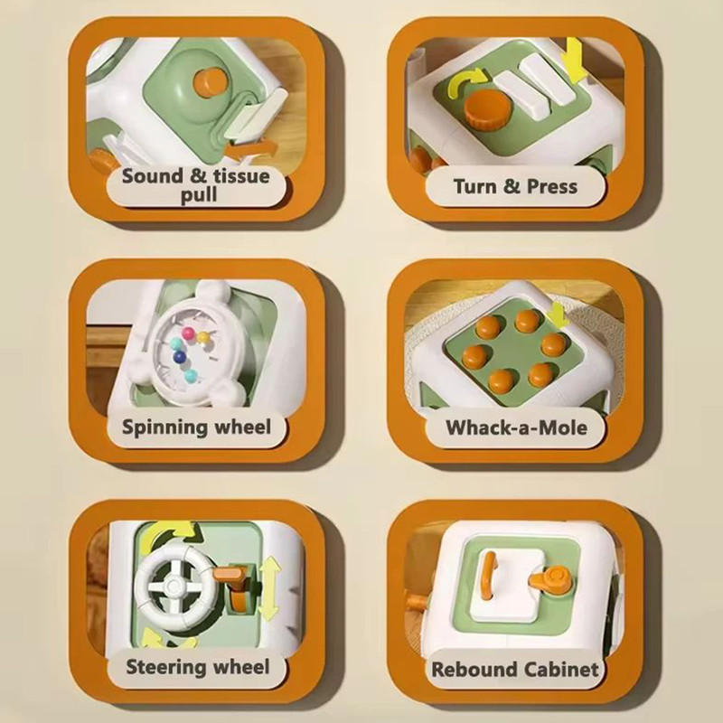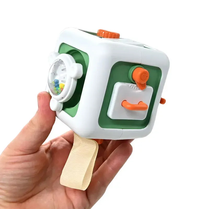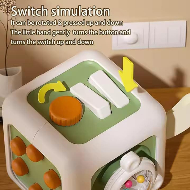 این مکعب جذاب دارای چندین بخش تعاملی متفاوت در هر ضلع است؛ دکمههای فشاری، چرخدندههای متحرک، کلیدهای کنترلی، اهرمها و قسمتهای چرخشی که حس کنجکاوی کودک را فعال میکنند. کودک با بازی کردن، بدون اینکه متوجه آموزش باشد، مهارتهای حرکتی ظریف دست، هماهنگی چشم و دست و قدرت تمرکز خود را تقویت میکند.