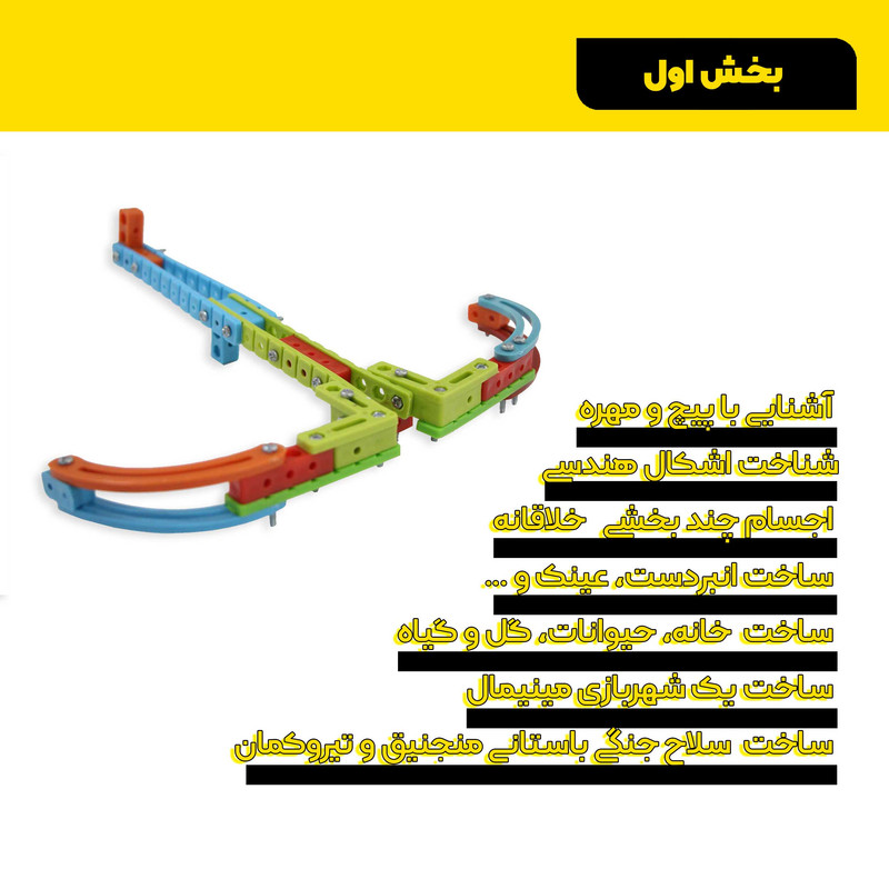 ابتدا در این بسته کودکان با نحوه ی اتصال صحیح سازه ها و پیچ و مهره آشنا خواهند شد. در ادامه انواع اشکال هندسی و انواع دست سازه های جذاب بدون موتور و بعضاً دارای موتور را خواهند ساخت از این جهت شما یک محصول اصیل و بینظیر را دریافت خواهید کرد.