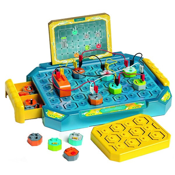 یک بازی جذاب برای ساخت مدارهای الکترونیکی است که در حین سرگرمی به شما آموزش نیز میدهد. این محصول دارای کارتهای راهنمای 2 طرفه و دفترچه راهنما همراه با عکس است که ایدههایی برای ساخت مدار به شما میدهند. به وسیله سنسورها، ترانزیستورها، ال ای دی ها، دکمه پتانسیومتر، فیوزها،دکمه روشن و خاموش، کابل های رسانا و بسیاری از اجزای دیگر انواع مدارهای مختلف با قابلیتهای متفاوت را بسازید.
