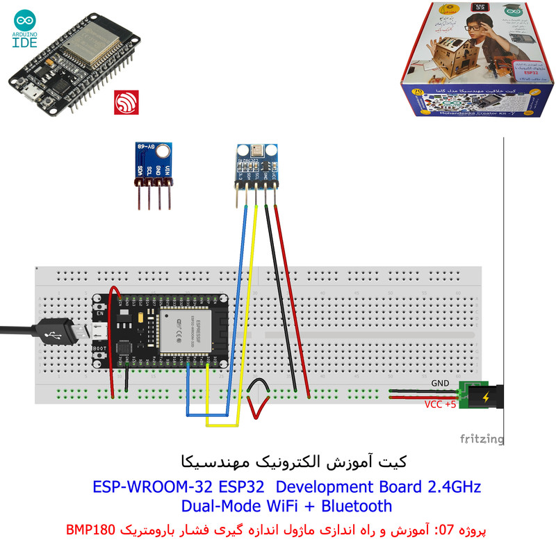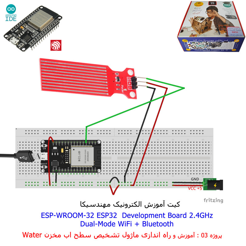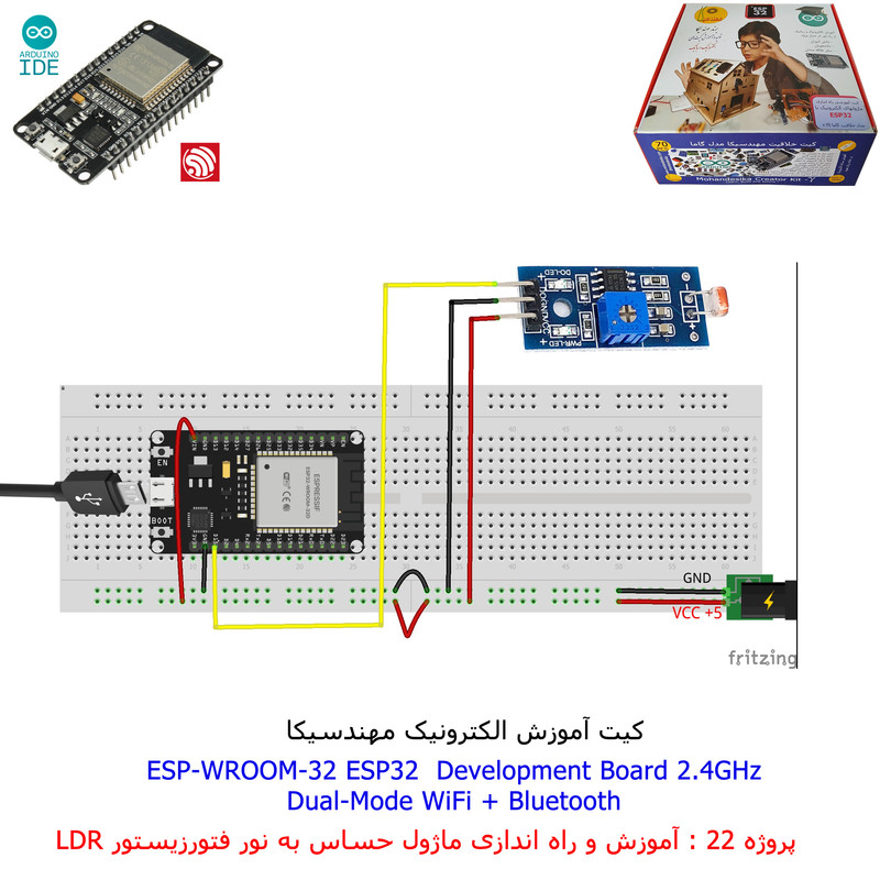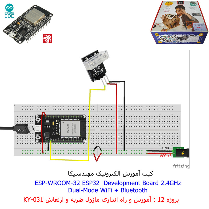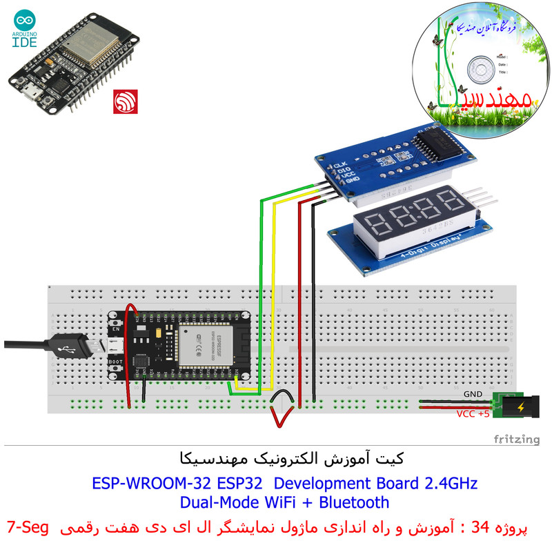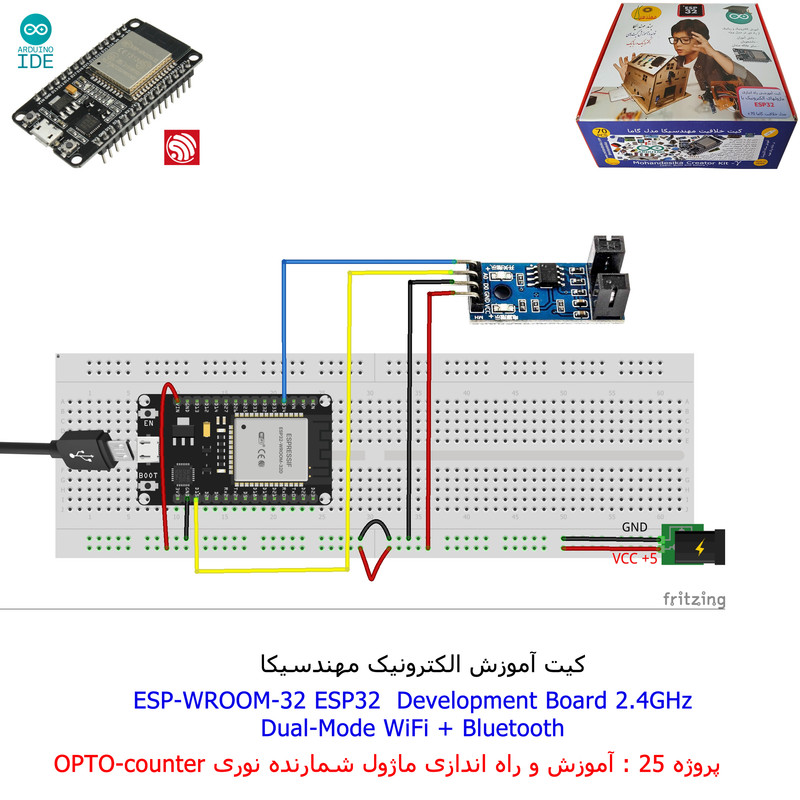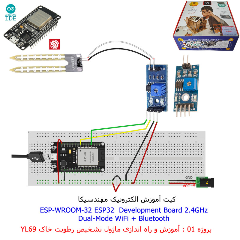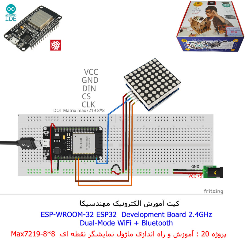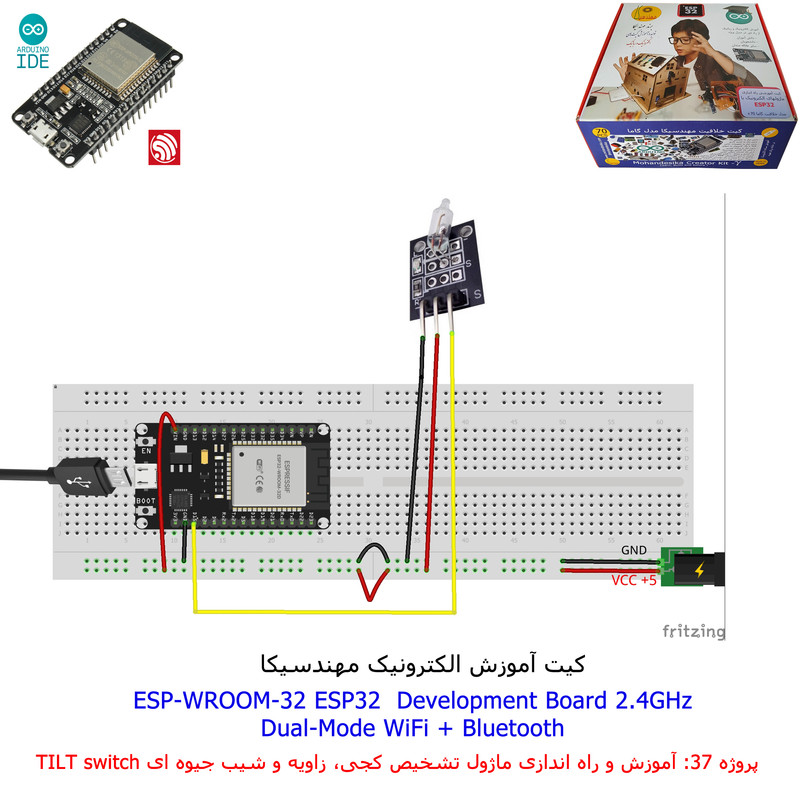 با استفاده از فایل آموزش ارائه شده قطعات وماژولها را روی برد بورد (breadboard) مونتاژ نمایید .مونتاژ برروی برد بورد (breadboard) مزایای زیادی برای کاربران دارد که در بردهای مدارچاپی امکان ندارد از جمله بازگشت و اصلاح مدار ویا استفاده از قطعات یا ماژولها در سایر طرحها و همچنین امکان مونتاژ و دمونتاژ مدار به کرات، این روش برای علاقه مندان که بصورت آزمایشگاهی مدارات مونتاژ میشوند بهترین روش آموزشی در یادگیری است. برای مونتاژ ماژول ESP32(مدل۳۰پین با مبدلCP2102)برروی بردبورد از شیلد ۳۰ پین DIP برد مهندسیکا استفاده میشود .ماژول ESP32 نسخه ی ارتقا یافته ی ESP8266 است. دارا بودن پردازنده ی قدرتمند این ماژول به همراه دو ماژول وای فای و بلوتوث و پایه های ورودی و خروجی با قابلیت های متنوع، ESP32 را گزینه ای مناسب برای استفاده در پروژه های هوشمند سازی تجهیزات (IOT) کرده است.یادگیری با فایل آموزشی و خدمات مشاوره آنلاین در سطح دانش آموزان و دانشجویان است .