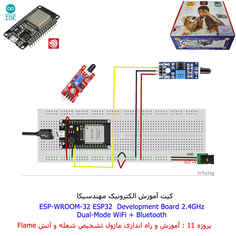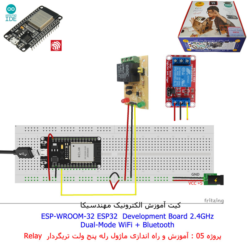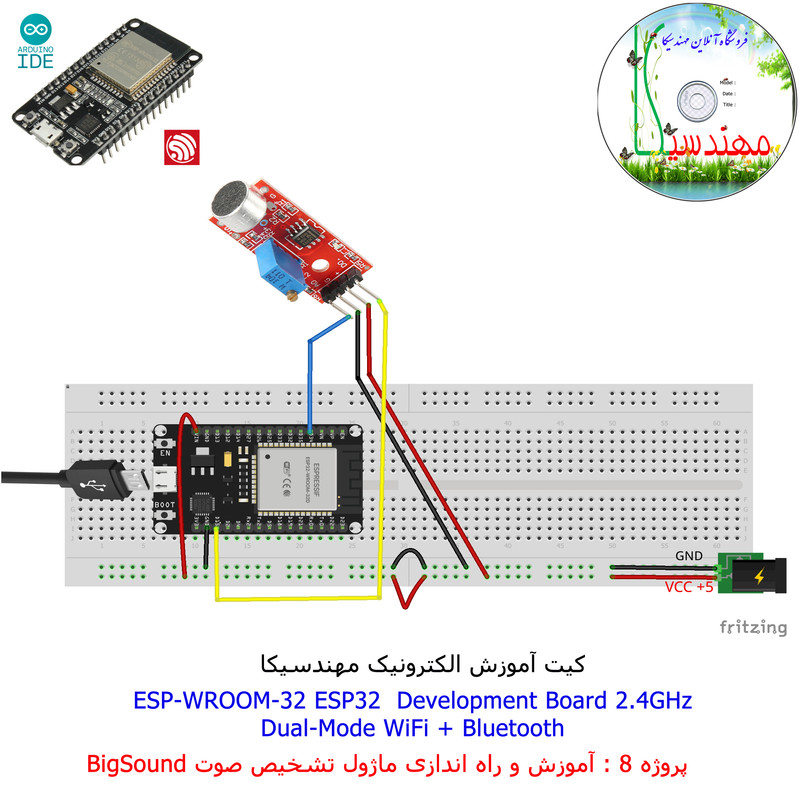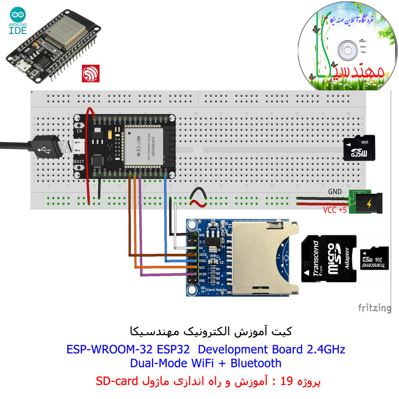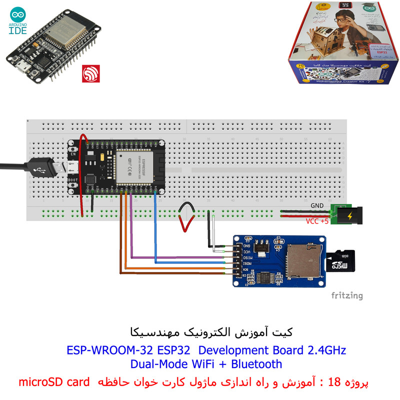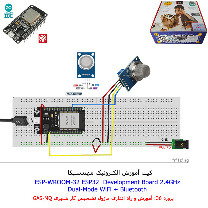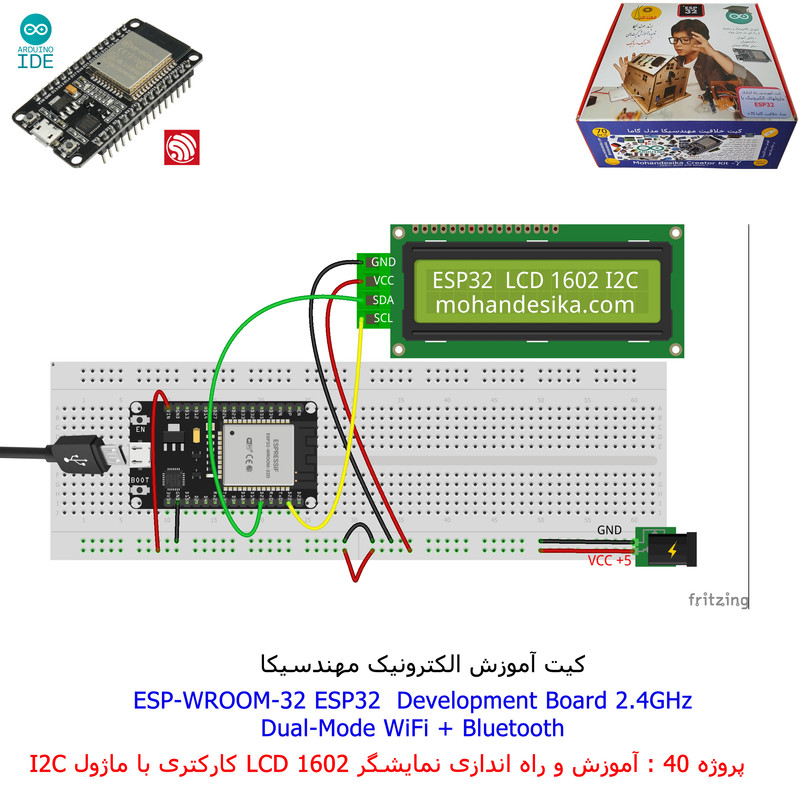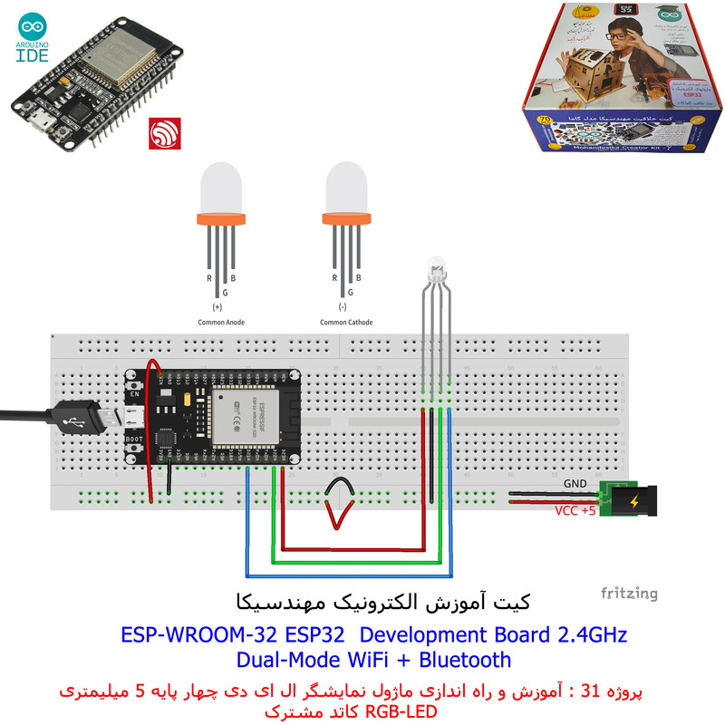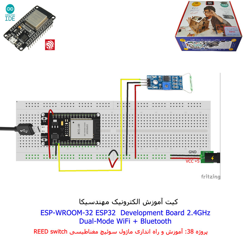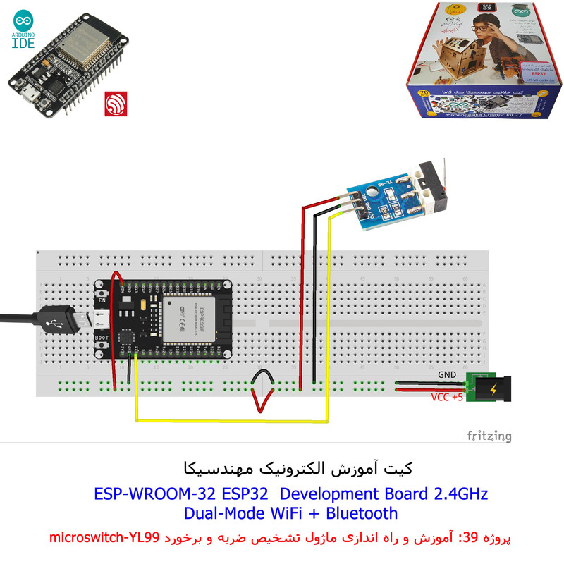 با استفاده از فایل آموزش ارائه شده قطعات وماژولها را روی برد بورد (breadboard) مونتاژ نمایید .مونتاژ برروی برد بورد (breadboard) مزایای زیادی برای کاربران دارد که در بردهای مدارچاپی امکان ندارد از جمله بازگشت و اصلاح مدار ویا استفاده از قطعات یا ماژولها در سایر طرحها و همچنین امکان مونتاژ و دمونتاژ مدار به کرات، این روش برای علاقه مندان که بصورت آزمایشگاهی مدارات مونتاژ میشوند بهترین روش آموزشی در یادگیری است. برای مونتاژ ماژول ESP32(مدل۳۰پین با مبدلCP2102)برروی بردبورد از شیلد ۳۰ پین DIP برد مهندسیکا استفاده میشود .ماژول ESP32 نسخه ی ارتقا یافته ی ESP8266 است. دارا بودن پردازنده ی قدرتمند این ماژول به همراه دو ماژول وای فای و بلوتوث و پایه های ورودی و خروجی با قابلیت های متنوع، ESP32 را گزینه ای مناسب برای استفاده در پروژه های هوشمند سازی تجهیزات (IOT) کرده است.یادگیری با فایل آموزشی و خدمات مشاوره آنلاین در سطح دانش آموزان و دانشجویان است .