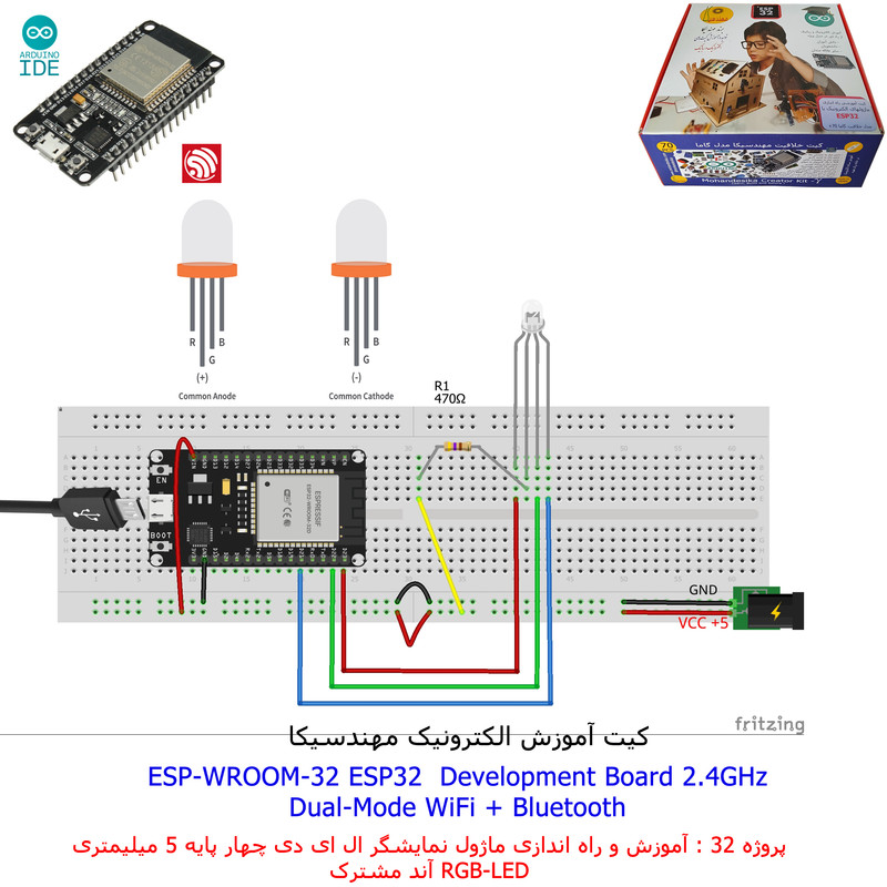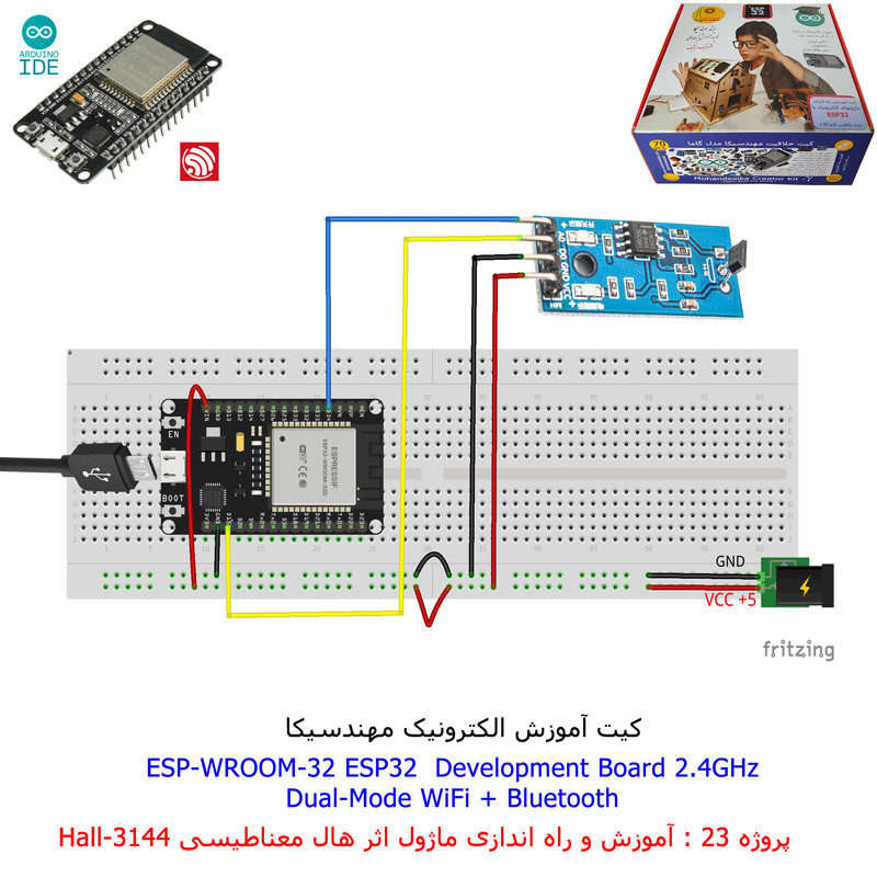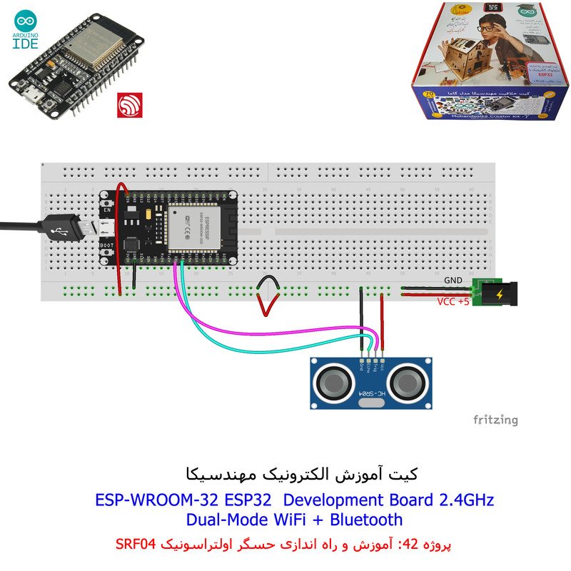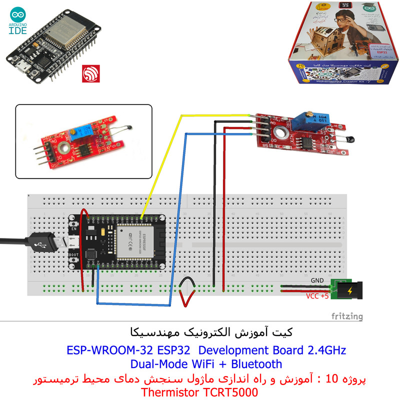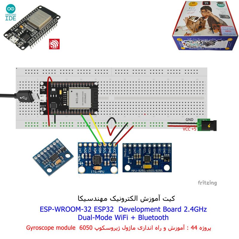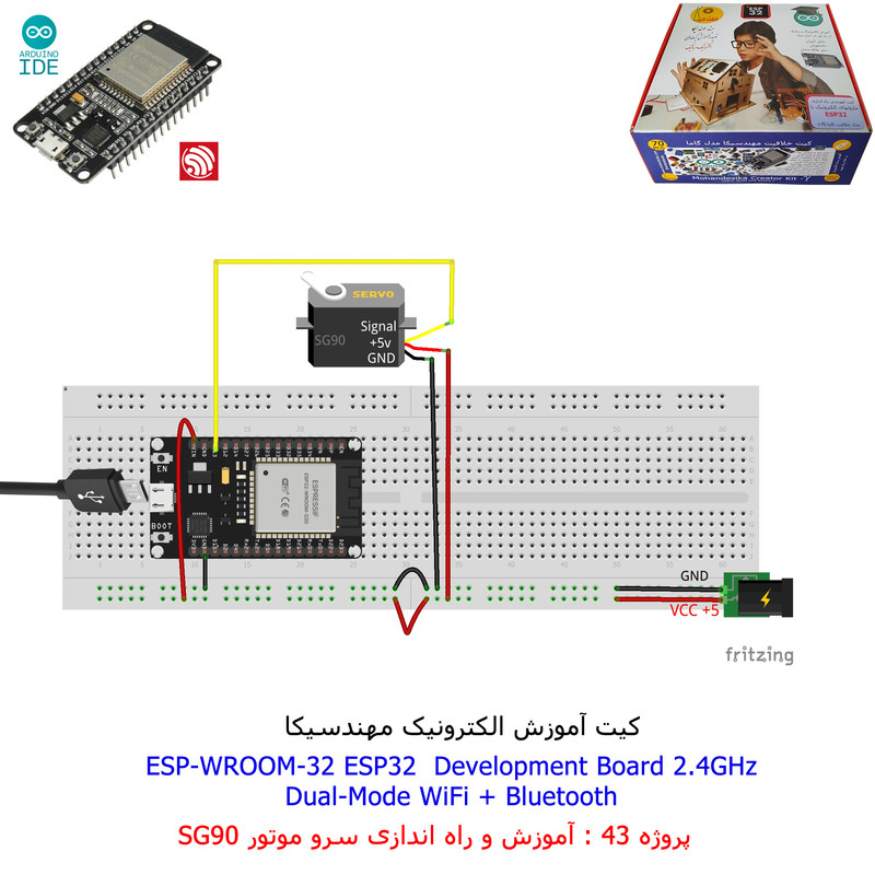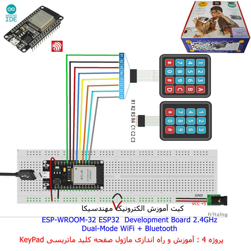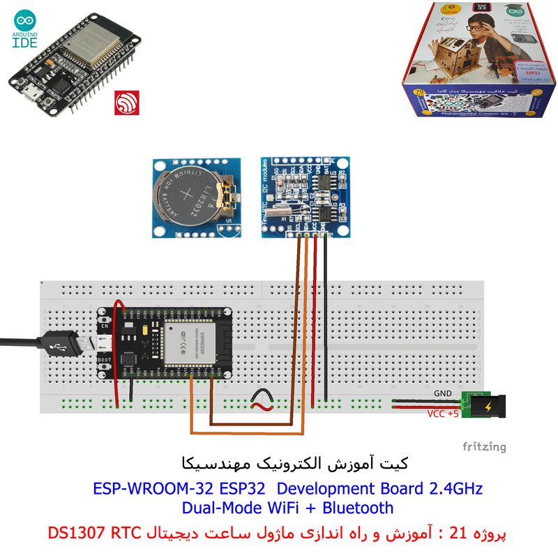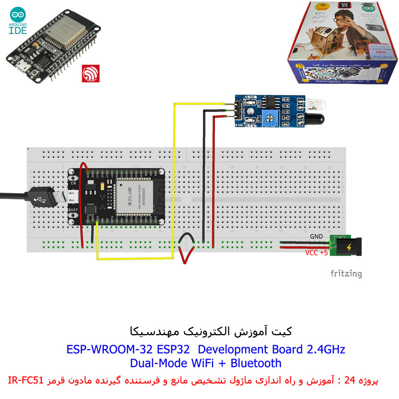 با استفاده از فایل آموزش ارائه شده قطعات وماژولها را روی برد بورد (breadboard) مونتاژ نمایید .مونتاژ برروی برد بورد (breadboard) مزایای زیادی برای کاربران دارد که در بردهای مدارچاپی امکان ندارد از جمله بازگشت و اصلاح مدار ویا استفاده از قطعات یا ماژولها در سایر طرحها و همچنین امکان مونتاژ و دمونتاژ مدار به کرات، این روش برای علاقه مندان که بصورت آزمایشگاهی مدارات مونتاژ میشوند بهترین روش آموزشی در یادگیری است. برای مونتاژ ماژول ESP32(مدل۳۰پین با مبدلCP2102)برروی بردبورد از شیلد ۳۰ پین DIP برد مهندسیکا استفاده میشود .ماژول ESP32 نسخه ی ارتقا یافته ی ESP8266 است. دارا بودن پردازنده ی قدرتمند این ماژول به همراه دو ماژول وای فای و بلوتوث و پایه های ورودی و خروجی با قابلیت های متنوع، ESP32 را گزینه ای مناسب برای استفاده در پروژه های هوشمند سازی تجهیزات (IOT) کرده است.یادگیری با فایل آموزشی و خدمات مشاوره آنلاین در سطح دانش آموزان و دانشجویان است .