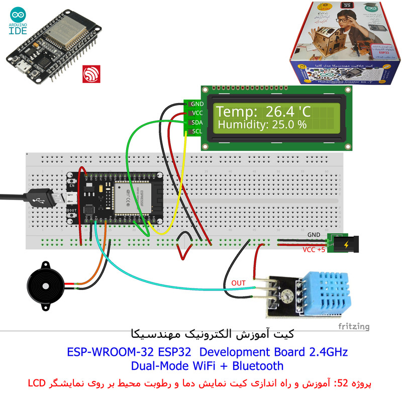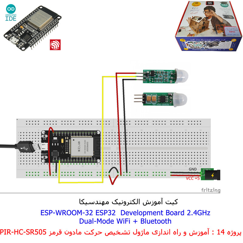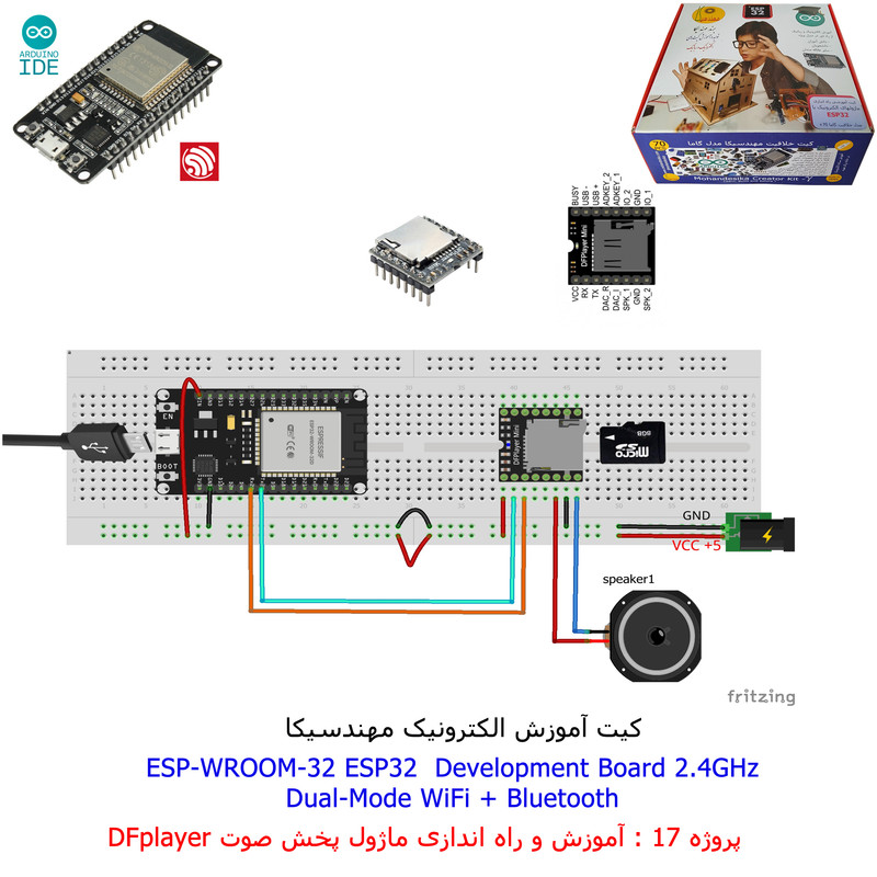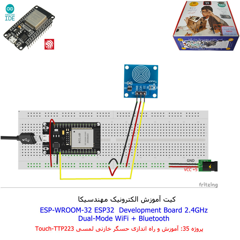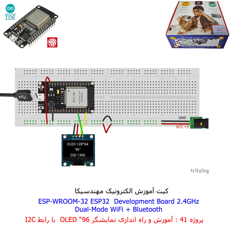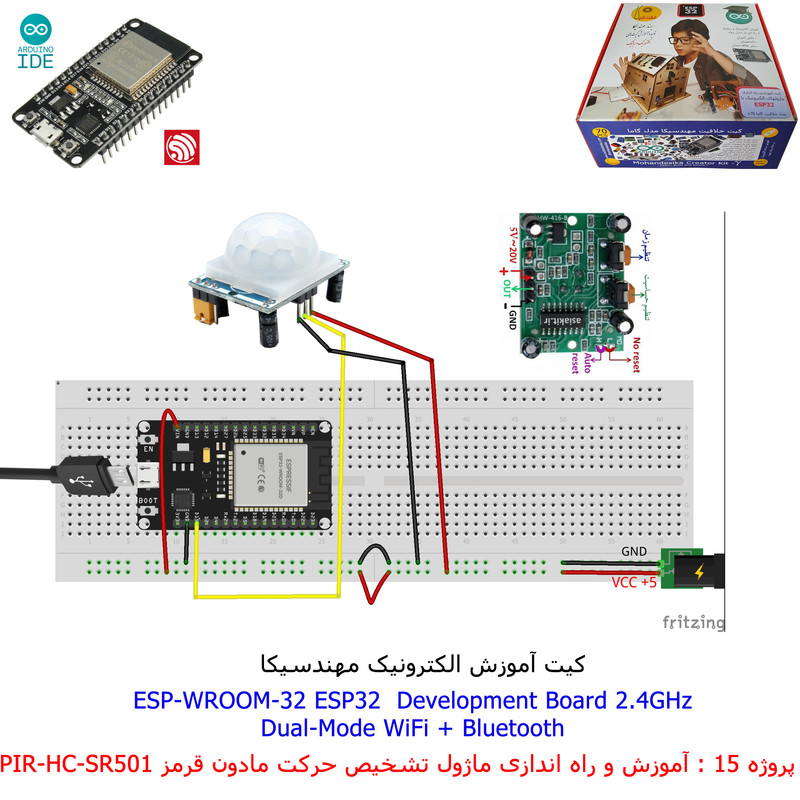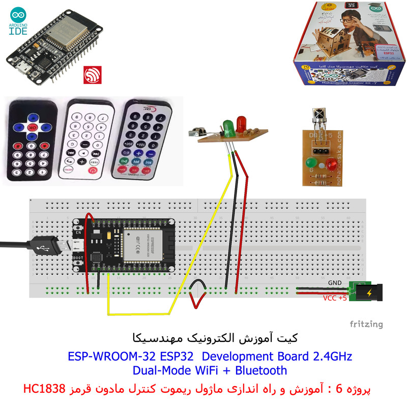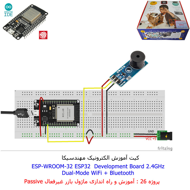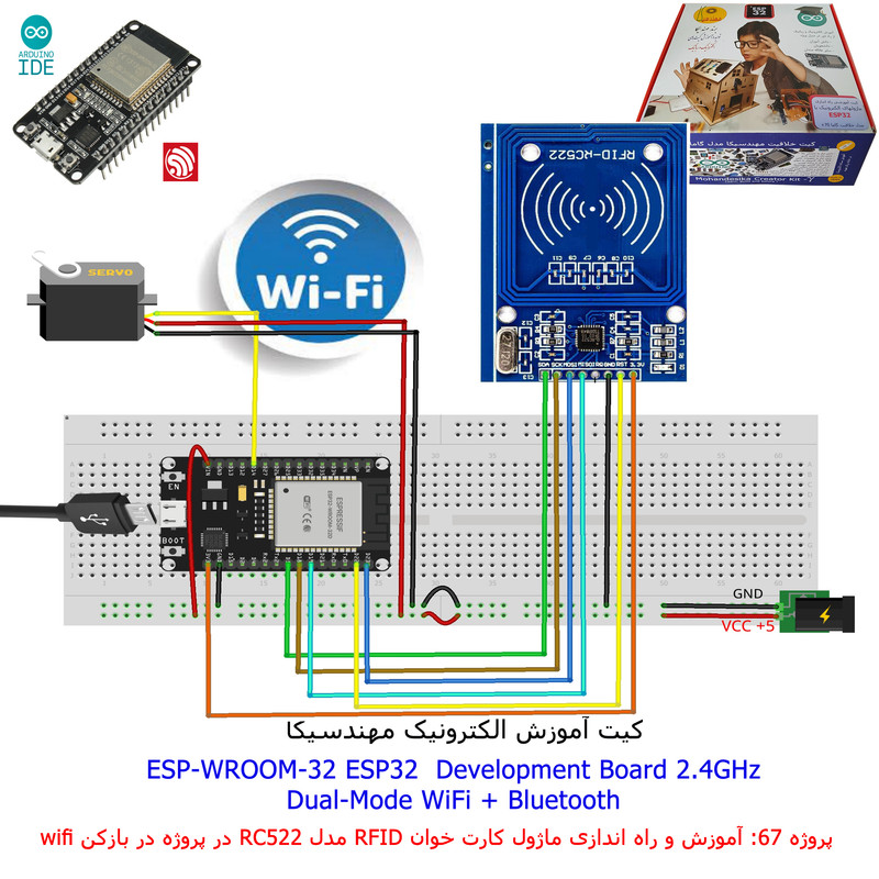 با استفاده از فایل آموزش ارائه شده قطعات وماژولها را روی برد بورد (breadboard) مونتاژ نمایید .مونتاژ برروی برد بورد (breadboard) مزایای زیادی برای کاربران دارد که در بردهای مدارچاپی امکان ندارد از جمله بازگشت و اصلاح مدار ویا استفاده از قطعات یا ماژولها در سایر طرحها و همچنین امکان مونتاژ و دمونتاژ مدار به کرات، این روش برای علاقه مندان که بصورت آزمایشگاهی مدارات مونتاژ میشوند بهترین روش آموزشی در یادگیری است. برای مونتاژ ماژول ESP32(مدل۳۰پین با مبدلCP2102)برروی بردبورد از شیلد ۳۰ پین DIP برد مهندسیکا استفاده میشود .ماژول ESP32 نسخه ی ارتقا یافته ی ESP8266 است. دارا بودن پردازنده ی قدرتمند این ماژول به همراه دو ماژول وای فای و بلوتوث و پایه های ورودی و خروجی با قابلیت های متنوع، ESP32 را گزینه ای مناسب برای استفاده در پروژه های هوشمند سازی تجهیزات (IOT) کرده است.یادگیری با فایل آموزشی و خدمات مشاوره آنلاین در سطح دانش آموزان و دانشجویان است .