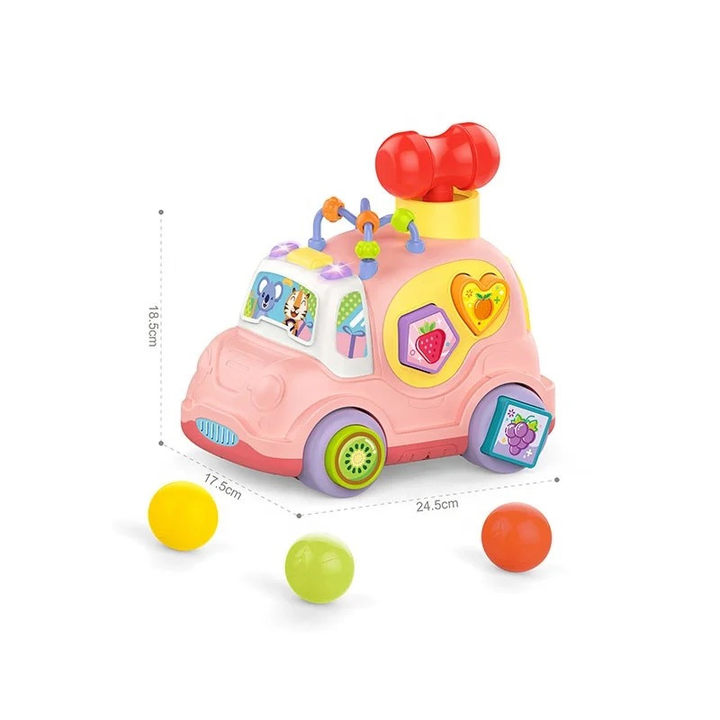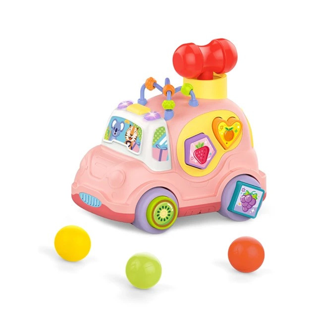 دارای 3 توپ و یک چکش است و با چکش توپ ها را از محفظه دایره ای بالا داخل ماشین کرده که کمک به افزایش مهارت حسی و حرکتی کودکان می کند