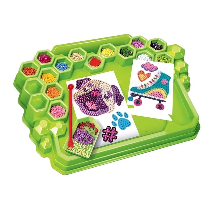 خلاصه روش بازی : 1. طرح مورد نظر را انتخاب کنید و روی پایه کار قرار دهید. 2. با استفاده از قلم مخصوص و پانک وکسی، نگینها را بردارید. 3. نگینها را مطابق با شمارهها روی طرح بچسبانید. 4. پس از اتمام، استیکر را جدا کرده و روی وسایل دلخواه بچسبانید.