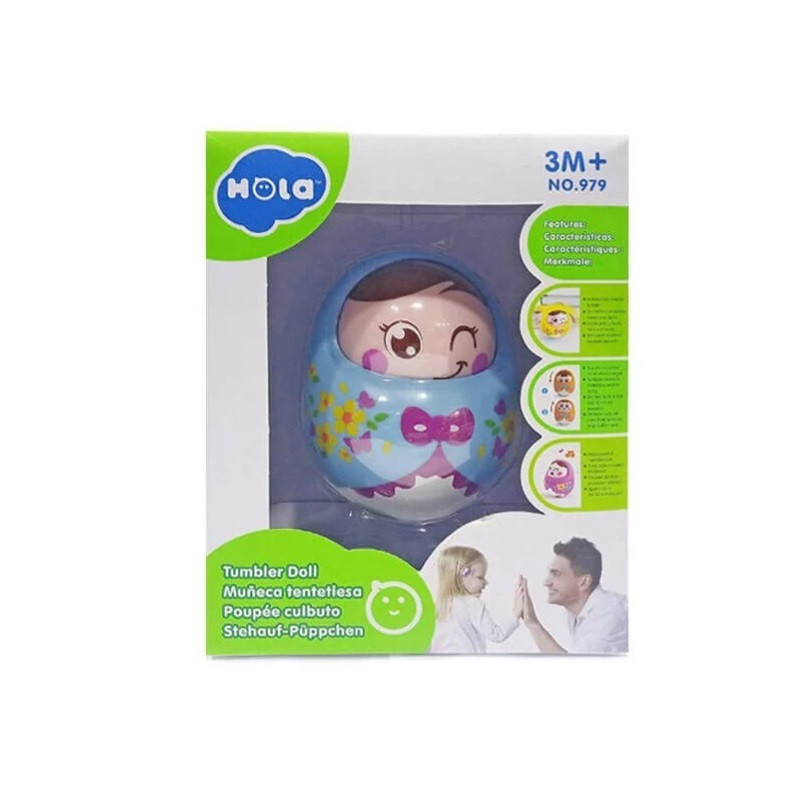 بچه ها علاقه زیادی به اسباب بازی های صدا دار دارند و اینگونه اسباب بازی ها توجه آنها را به خود جلب می کند. این عروسک نشکن بوده و با تکان دادن آن تعادلش را حفظ می کند و نمی افتد. این محصول از برند هولا بوده و بسیار با کیفیت می باشد و برای سیسمونی نیز مناسب است.