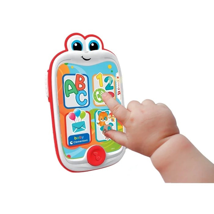 یک تلفن همراه بامزه و سخنگو با صفحهای رنگی و نورانی، طراحی شده برای تقلید از موبایلهای واقعی بزرگترها است