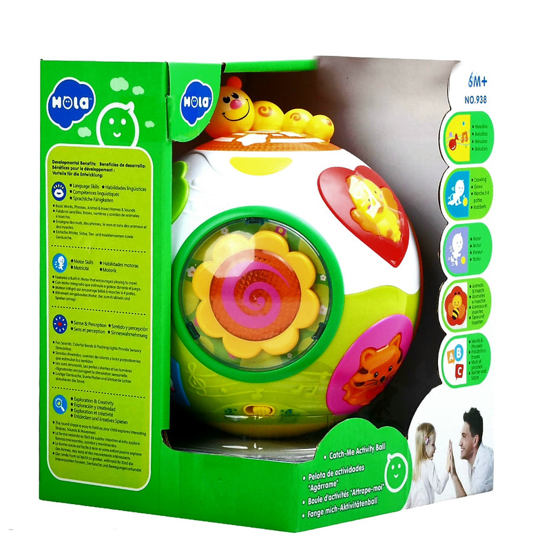 در حالت ساکن کودک قادر خواهد بود توپ را در آغوش گرفته و از جغجغههای تعبیه شده بروی توپ و سایر ابزار تولید جهت سرگرمی خود بهره ببرد. در ساخت توپ شاد هولي تويز، از رنگهای غیر شیمیایی استفاده شده است و مواد اولیه بسیار با کیفیت در ساخت آن بکار رفته است.