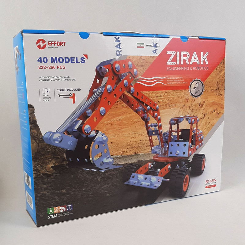 سازه فلزی زیرک یک سازه جذاب و سرگرم کننده برای کودکان و نوجوان های خلاق و باهوش است این سازه فلزی دارای 265 قطعه می باشد.سازههای فلزی زیرک وسایل علمی، آموزشی، مهندسی و سرگرمی هستند. سازهی پیشرفته ی 40مدل مجموعهی کوشش است که شامل مدلهای نسبتاً پیچیده و خلاقانه ساختنی میشود. این سازه حاوی 449 قطعه است که میتوان با استفاده از راهنمای درون جعبه 40 مدل مختلف سازه با آنها ساخت و البته با استفاده از خلاقیت خود میتوان مدلهای متنوع دیگری خلق کرد. سازههای فلزی با تلفیق بازی و مهندسی مهارتهای مختلفی را تقویت میکنند. از مهمترین مهارتها میتوان به تقویت ماهیچههای ظریف دست و کار با ابزار، هماهنگی چشم و دست، نقشه خوانی و آشنایی با مکانیزمهای مهندسی اشاره کرد.