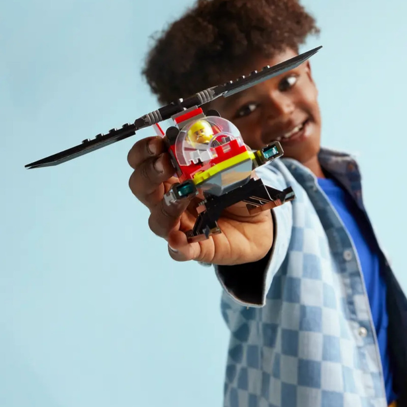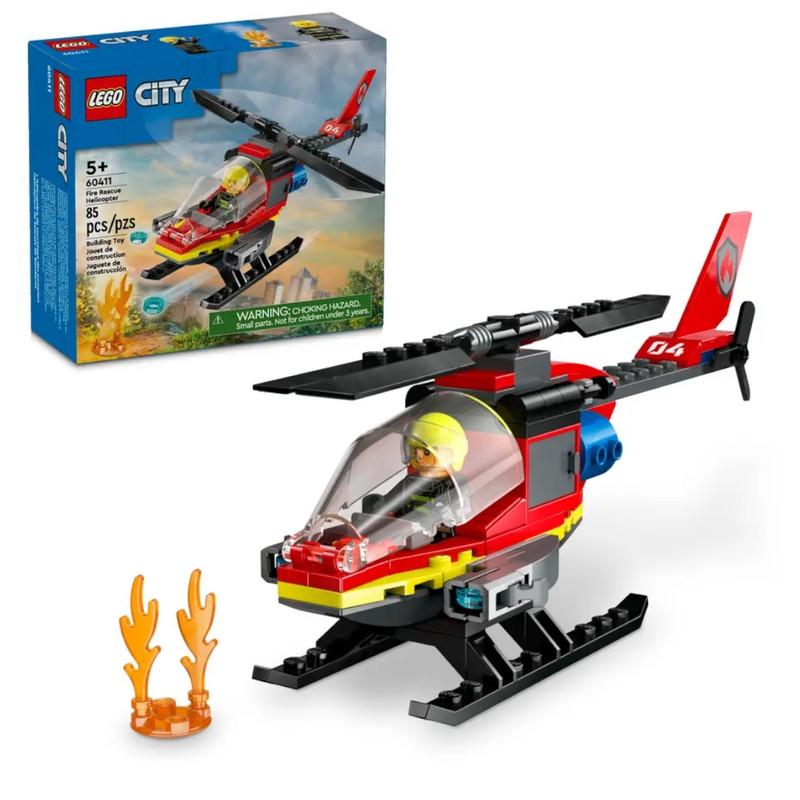 هلیکوپتر آتش نشانی LEGO City (60411) یک مجموعه کوچک لگو است که به کودکان از 5 سال اجازه می دهد تا یک هلیکوپتر مدل بسازند و نقش های هیجان انگیز را در اطراف تیم آتش نشانی LEGO City اختراع کنند. اسباب بازی هلیکوپتر LEGO City برای کودکان دارای 2 توپ خاموش کننده است که عناصر آب لگو را شلیک می کند، روتورهای چرخان و یک کابین خلبان خنک برای مینی فیگور خلبان آتش نشانی. اپلیکیشن LEGO Builder کودکان را به یک ماجراجویی ساختمانی جذاب می برد. در این برنامه، میتوانید مجموعههای پخش را کاوش کرده و ذخیره کنید، پیشرفت ساخت و ساز خود را دنبال کنید و نماهای مدل را بزرگ کنید، بچرخانید و از هر زاویه مشاهده کنید. این هلیکوپتر آتش نشانی اسباب بازی را با سایر مجموعه های LEGO City به صورت جداگانه ترکیب کنید و منتظر ماجراجویی های هیجان انگیز بیشتری باشید. مجموعههای ساختمانی LEGO City شامل وسایل نقلیه واقعی، ساختمانهای دقیق و چهرههای جذابی است که به کودکان اجازه میدهد تخیلی و بدون محدودیت بازی کنند. این اسباب بازی جذاب هلیکوپتر آتش نشانی لگو سیتی برای کودکان امکان عملیات اطفای هیجان انگیز را فراهم می کند و یک هدیه خودبه خودی آتش نشانی عالی برای قهرمان کوچک زندگی روزمره شما است. ارتفاع این هلیکوپتر 9 سانتی متر، طول 22 سانتی متر و عرض 6 سانتی متر است. شامل 85 قطعه