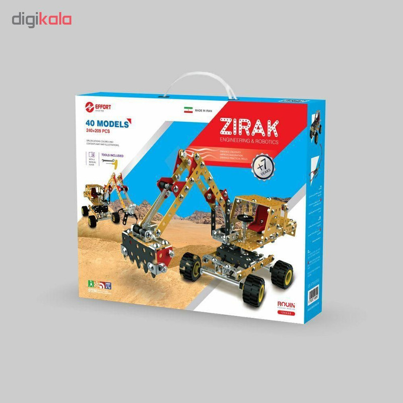 سازه فلزی زیرک یک سازه جذاب و سرگرم کننده برای کودکان و نوجوان های خلاق و باهوش است این سازه فلزی دارای 449 قطعه می باشد.سازههای فلزی زیرک وسایل علمی، آموزشی، مهندسی و سرگرمی هستند. سازهی پیشرفته ی 40مدل مجموعهی کوشش است که شامل مدلهای نسبتاً پیچیده و خلاقانه ساختنی میشود. این سازه حاوی 449 قطعه است که میتوان با استفاده از راهنمای درون جعبه 40 مدل مختلف سازه با آنها ساخت و البته با استفاده از خلاقیت خود میتوان مدلهای متنوع دیگری خلق کرد. سازههای فلزی با تلفیق بازی و مهندسی مهارتهای مختلفی را تقویت میکنند. از مهمترین مهارتها میتوان به تقویت ماهیچههای ظریف دست و کار با ابزار، هماهنگی چشم و دست، نقشه خوانی و آشنایی با مکانیزمهای مهندسی اشاره کرد.مدلهای قابل ساخت با این مجموعه ی 40 مدلی:هواپیمای جنگی تراکتور روبات کامیون موتور سیکلت و ... ساخت.