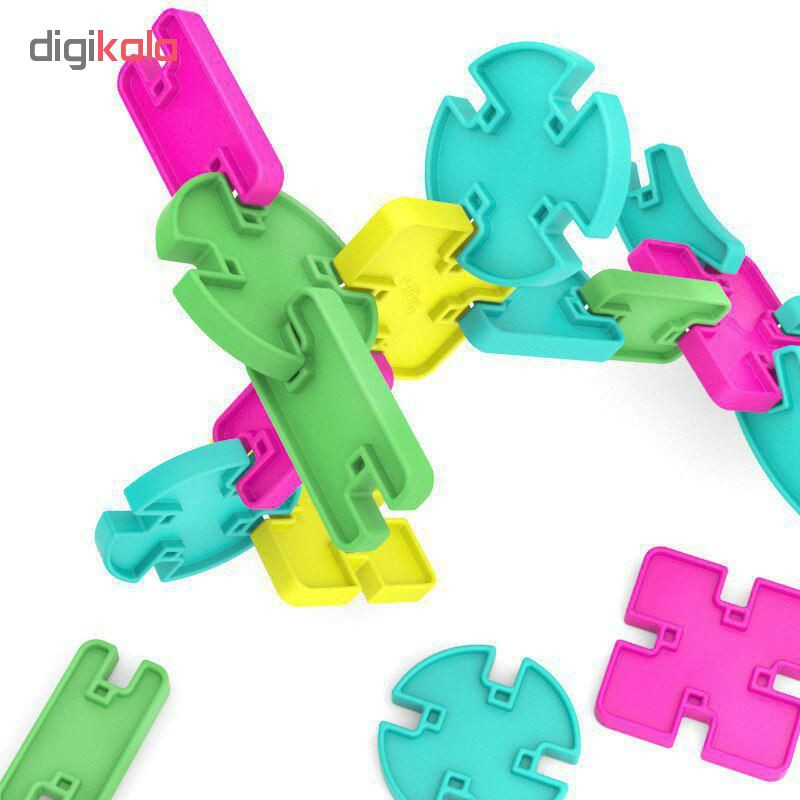 این مجموعه شامل 60 قطعه پلاستیکی در 4 مدل و 5 رنگ درخشان و شفاف می باشد. در هر قطعه نقاط اتصال وجود دارد که کودک با خلاقیت خود و با استفاده از این قطعات میتواند ده ها و یا صد ها مدل بسازد.این بازی به رشد خلاقیت،تقویت هوش فضایی- بصری و همچنین تقویت مهارت دست ورزی کودکان کمک به سزایی میکند.