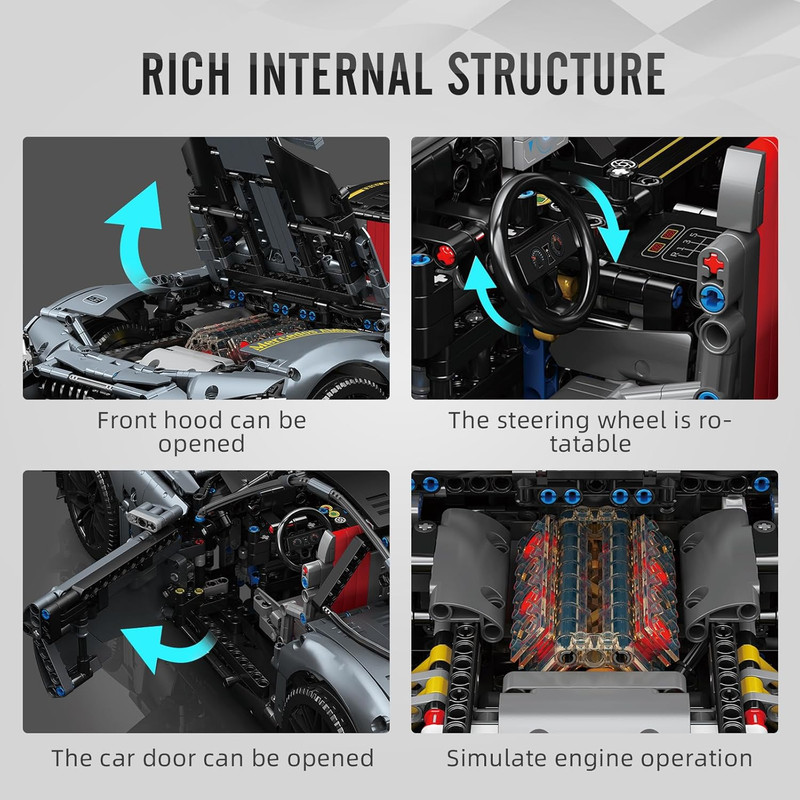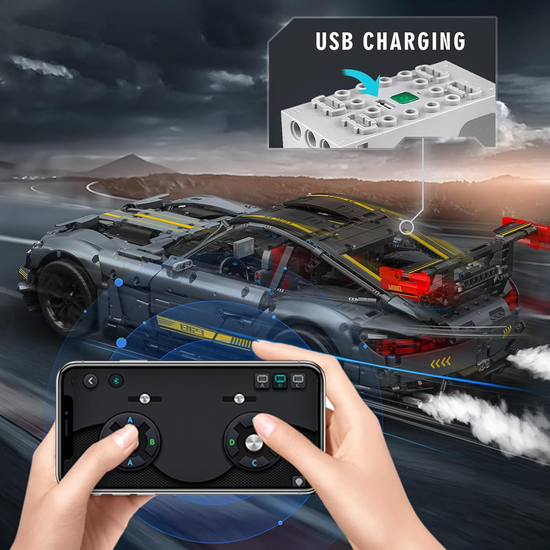 سایر توضیحات : لگو ماشین کنترلی مولدکینگ مدل 13123SD ماشین اسپرت Mercedes Benz AMG GT R shadow ریموت دار با قابلیت کنترل از طریق اپلیکیشن موبایل