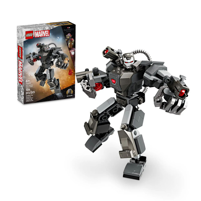 مجموعه بازی قابل ساخت LEGO® Marvel War Machine Mech Armor (76277) دارای یک ربات قابل ساخت و کاملاً مفصل برای کودکان، پسران و دختران بالای 6 سال است و دارای تیراندازهای گل میخ و یک خلبان مینی فیگور است. قفسه سینه ماشین باز می شود تا کابین خلبان مینی فیگور ماشین جنگ را نشان دهد. 3 تیرانداز گل میخ – 1 بر روی شانه ماشین و 2 بر روی بازوهای آن – و یک جعبه ذخیره سازی در پشت آن برای مهمات اضافی وجود دارد. این چهره احتمالی مارول دستها، پاها و دستهای مشترکی دارد تا طرفداران ماشین جنگی و جنگجویان مکانیکی بتوانند از اکشنهای بیپایان نبرد دستآمیز لذت ببرند. بچهها میتوانند با ترکیب این اسباببازی قابل ساخت با سایر ماشینهای LEGO Marvel (بهطور جداگانه فروخته میشوند)، امکانات بازی را حتی بیشتر گسترش دهند. برای سرگرمی دیجیتالی بیشتر، سازندگان میتوانند بزرگنمایی کنند، مدلها را به صورت سه بعدی بچرخانند و پیشرفت آنها را با استفاده از برنامه سرگرمکننده و بصری LEGO Builder پیگیری کنند.