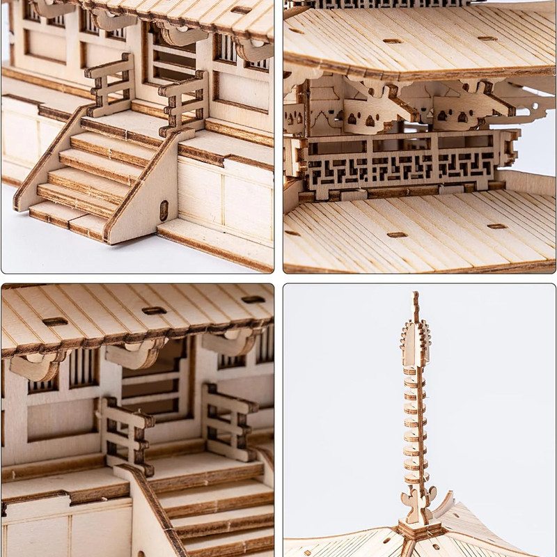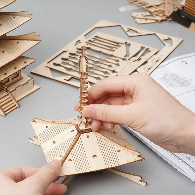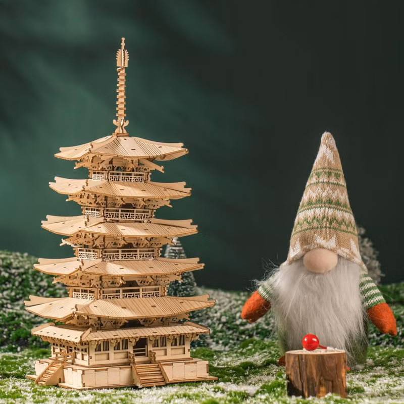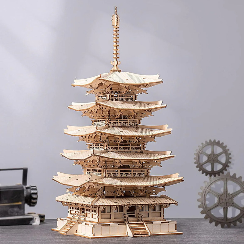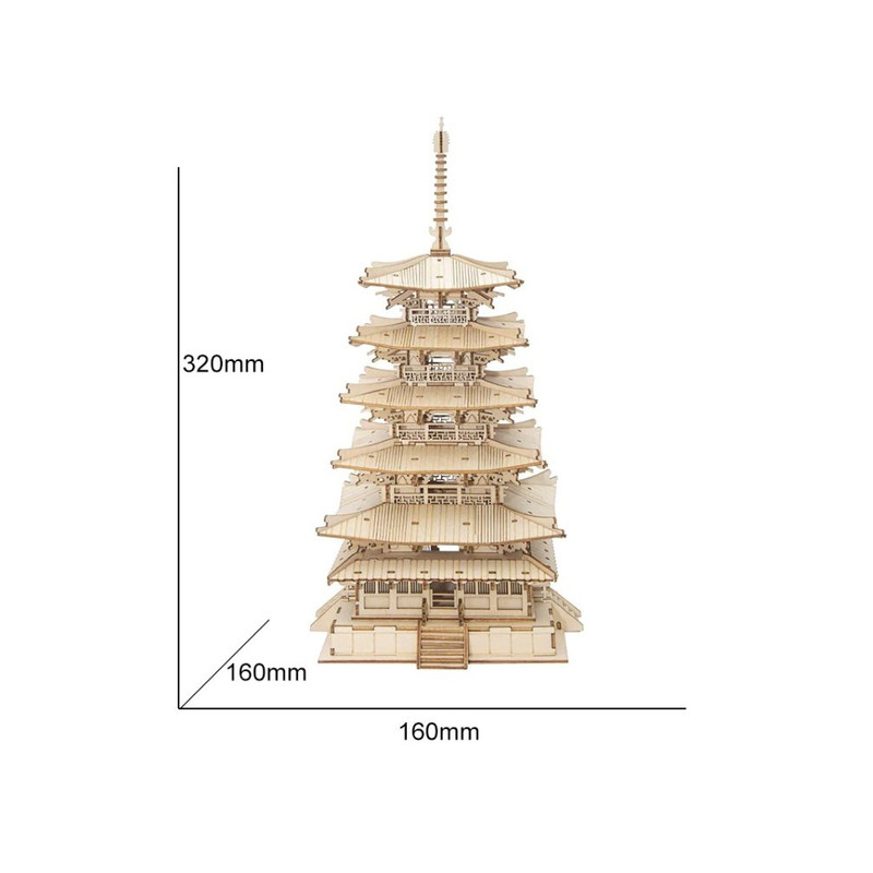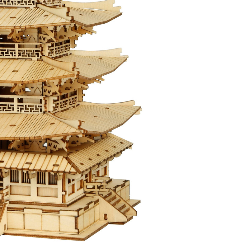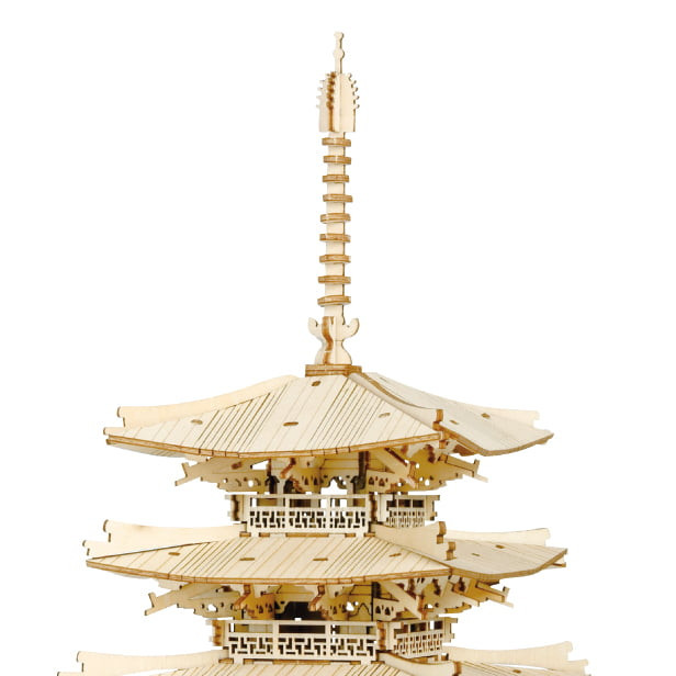 مدل Rolife Five-storied Pagoda TGN02 بازآفرینی زیبا و چشمنواز از یکی از نمادینترین سازههای مذهبی و فرهنگی شرق آسیاست. این مدل چوبی با الهام از پاگودای پنجطبقهی ژاپن طراحی شده که ریشههای آن به دوران سلسله تانگ چین باستان بازمیگردد. زمانی که تبادل فرهنگی میان چین و ژاپن، شکل تازهای از معماری مذهبی را پدید آورد. نتیجهی آن، ترکیبی هماهنگ از شکوه چینی و ظرافت ژاپنی است که در این مدل چوبی بهزیبایی بازتاب یافته است.