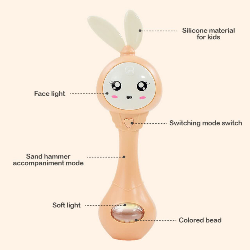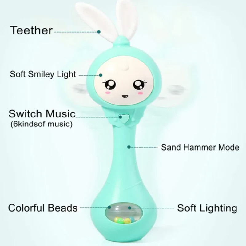 جغجغه ناب سل مدل دستی دندان گیر چراغدار موزیکال خرگوش بامزه کد Funny rabbit teething hand rattle