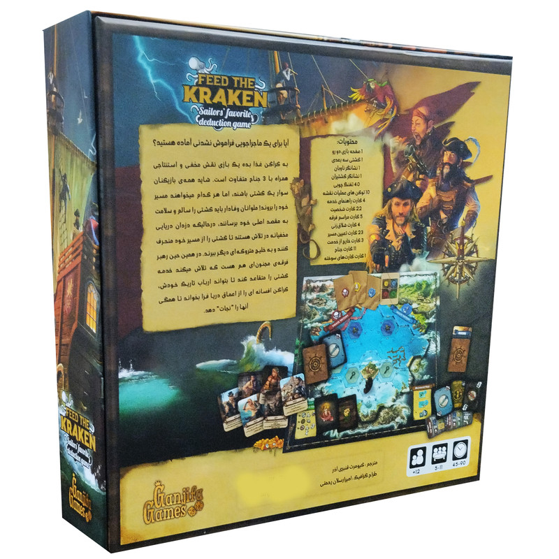 به خاطر یکسری از اتفاقات شوم و ناخوشایند، من تا اینجا نیمای از خدمهام رو در طول مسیر از دست داده ام. نیمای دیگر معتقد بودند که کشتی ما نفرین شده است و به محض اینکه به یک بندر کوچک برای تهیهی آذوقه رسیدیم، مرا ترک کردند. من برای تکمیل این سفر نیاز به استخدام یک خدمه توانمد داشتم و در واقع یکی از اون ها رو هم در محلی پیدا کردم اما به نظر می رسد برخی از این افراد با کشتی من، نقشه های دیگری دارند.در بازی به کراکن غذا بده، هر بازیکن به صورت مخفیانه یک نقش از بین ملوان، دزد دریایی یا رهبر فرقه را دریافت می کند و از تمام ابزارهای موجود برای ترسیم مسیر کشتی به سمت مقصد جناح خود استفاده می کند. در هر دور، کشتی در یکی از سه جهت ممکن حرکت می کند اما این حرکت به کدام سمت خواهد بود.بازیکنان به نوبت به عنوان ناخدا، ناوبان یا کشتیران خواهند بود. هر کدام این شانس را دارند که مسیر حرکت کشتی را دستکاری کنند. بازیکنان از جستوجوهای کابین خدمهی کشتی استفاده کرده و شاهد آن خواهند بود و همچنین شورشهای بیرحمانه، ساکت کردن دشمنان خطرساز و حتی قربانی کردن برای کراکن را تجربه خواهند کرد.همه بازیکنان باید از مهارت های استنتاج خود استفاده کنند تا متوجه شوند که در طول این ماجراجویی محکوم به فنا، به چه کسی میتوانند اعتماد کنند.به کراکن غذا بده یک بازی نقش مخفی و استنتاجی همراه با 3 جناح متفاوت است. شاید همهی بازیکنان سوار یک کشتی باشند، اما هر کدام میخواهند مسیر خود را بروند.ملوانان وفادار باید کشتی را سالم و سلامت به مقصد اصلی خود برسانند، درحالیکه دزدان دریایی مخفیانه در تلاش هستند تا کشتی را از مسیر خود منحرف کنند و به خلیج متروکهای دیگر ببرند. در همین حین رهبر فرقهی مجنونای هم هست که تلاش میکند خدمه کشتی را متقاعد کند تا بتواند ارباب تاریک خودش، کراکن افسانه ای را از اعماق دریا فرا بخواند تا همگی آنها را نجات دهد.