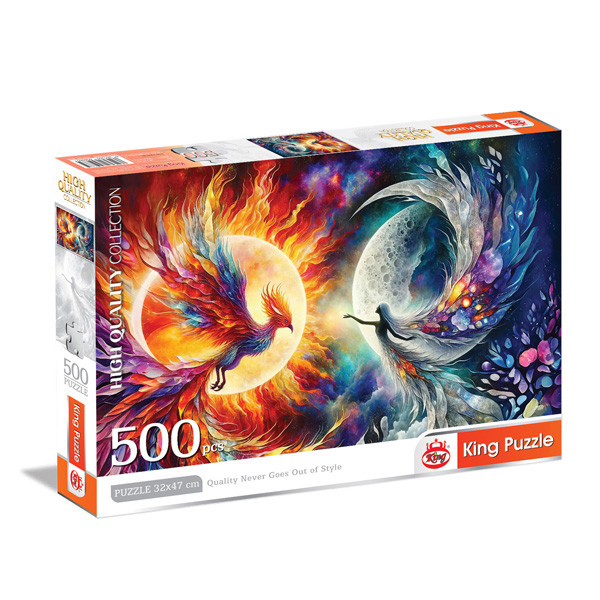 پازل 500 تکه کینگ مدل سیمرغ مقوا پشت آبی ترکیه ای با کیفیت عالی تولید ایران و صادراتی سرگرمی خلاقانه مقوا کیفیت بالا 30*20*5 سانتی متر و 300 گرم است.