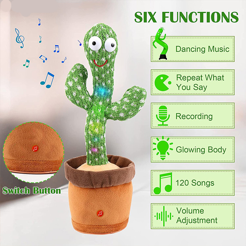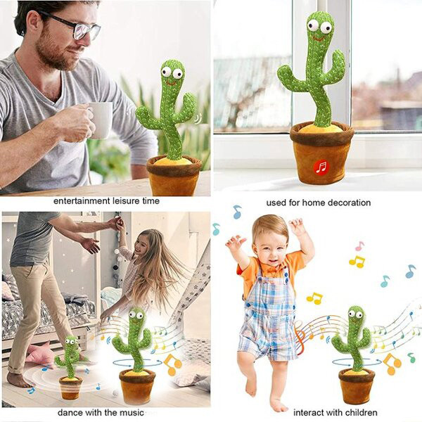 عروسک کاکتوس رقصنده یکی از جدیدترین عروسکهای دنیاست که عکسها و فیلمهای آن در فضای مجازی به سرعت پخش شده و دست به دست میشود. این عروسک کاکتوس سخنگو همانطور که از اسمش مشخص است، میتواند حرف بزند. هر حرف یا صدای شما را تکرار میکند و همزمان با حرکات و عجیب و بامزه میرقصد. این عروسک کاکتوس هوشمند بچهها را شگفتزده میکند. این عروسک کاکتوس میتواند خودش آهنگ بخواند و برقصد. شما میتوانید به کمک کلیدهایی که روی این عروسک قرار گرفته، قابلیتهای مختلف آن را تنظیم کنید. عروسک کاکتوس متحرک دارای یک گلدان نرم و لطیف پولیشی و یک کاکتوس سبز رنگ بانمک است. این عروسک شارژی میباشد و دکمهای برای خاموش کردن و روشن کردن دارد. چشم های بانمک این عروسک ظاهرش را خندهدار میکند و برای بچهها بسیار جالب است. جنس این عروسک پولیشی بهترین کیفیت را دارد و برای بچهها ضد حساسیت است و در صورت کثیف شدن به آرامی با یک پارچه مرطوب تمیز میشود.بار اولی که کودک شما این عروسک را میبیند فکر میکند مانند بقیه عروسکهاست ولی وقتی با او حرف میزند متوجه میشود که یک عروسک استثنایی و متفاوت است. وقتی عروسک کاکتوس تقلید صدا را در مقابل کودک خود میگذارید کودک شما با اولین کلمه ای که به میگوید شگفتزده خواهد شد. این عروسک هر کلمهای که کودک شما بگوید را تکرار میکند. کودک شما ساعتها مشغول صحبت کردن با دوست عروسکیاش میشود و لذت میبرد. وقتی فرزند ما بتواند با خیال راحت با عروسکهایش حرف بزند بسیاری از مهارتهای شنیداری و گفتاریاش تقویت میشود. وقتی کودک ما عروسکی داشته باشد که با صبر و حوصله به حرفهایش گوش میدهد، فرصت پیدا میکند که احساساتش را بروز بدهد و احساسات منفی مثل غم، خشم، اضطراب از درونش آزاد شود و آسیبزا نشود. بازی کردن با عروسک کاکتوس سخنگو راهی برای افزایش اعتماد به نفس کودک است. هنگامی که کودک میبیند عروسکش با تمام توجه به حرفهایش گوش میکند، باعث میشود اعتماد به نفسش برای صحبتکردن در جمع بیشتر شود.