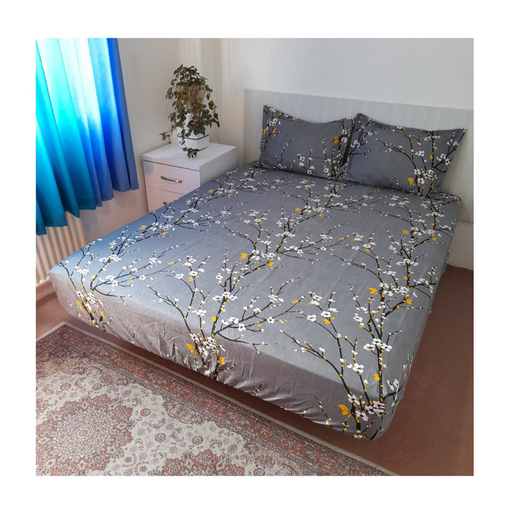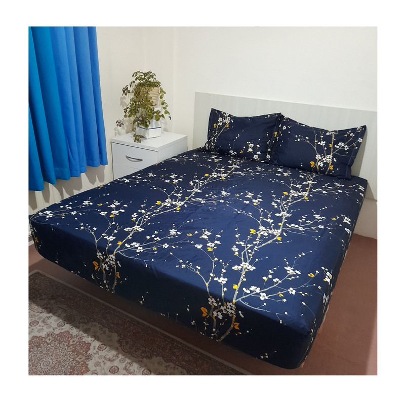 سرویس ملحفه مدل کشدار طرح شکوفه کد ni06051 180 دو نفره 3 تکه
