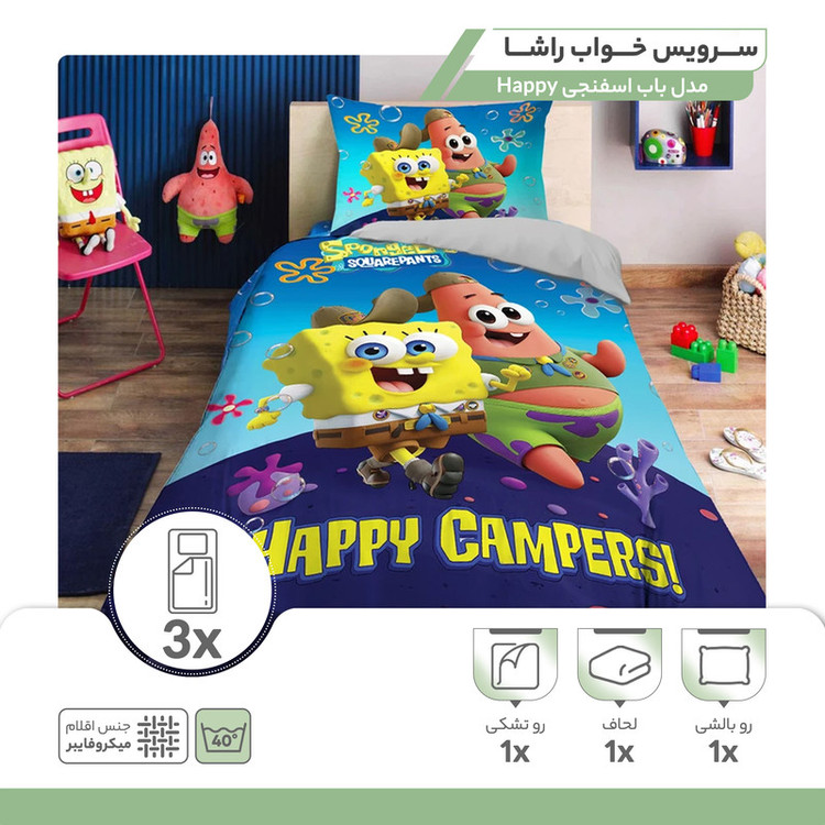 سرویس خواب راشا مدل باب اسفنجی Happy یک نفره 3 تکه